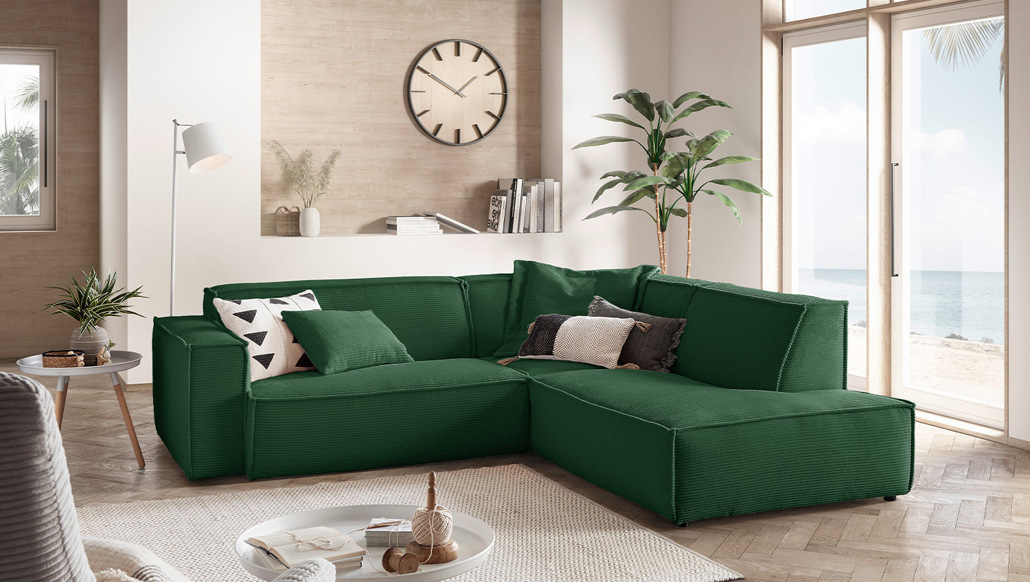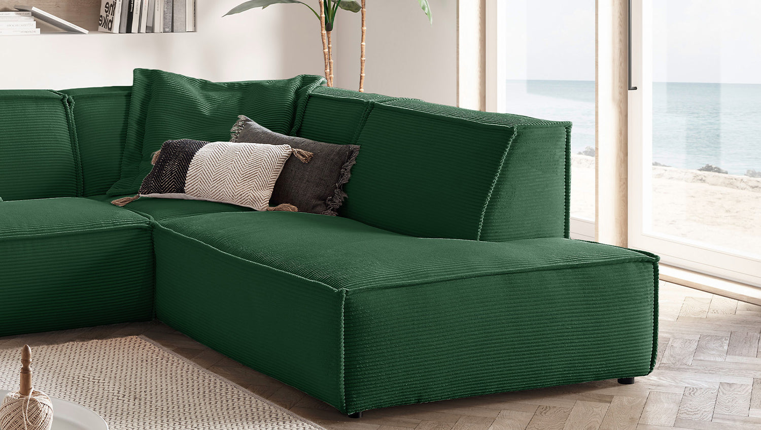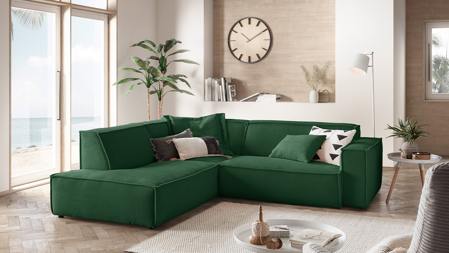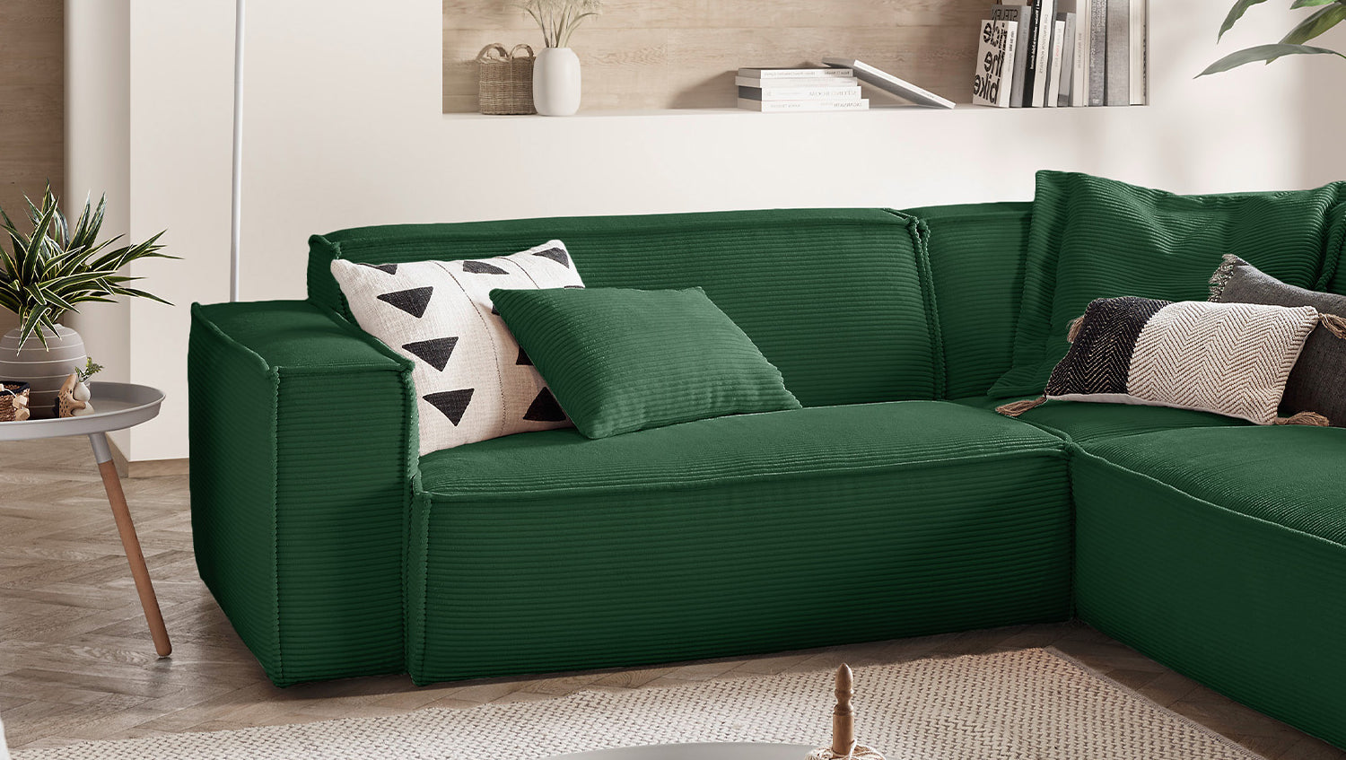 KAWOLA Sofa SAMU Ecksofa Cord smaragd