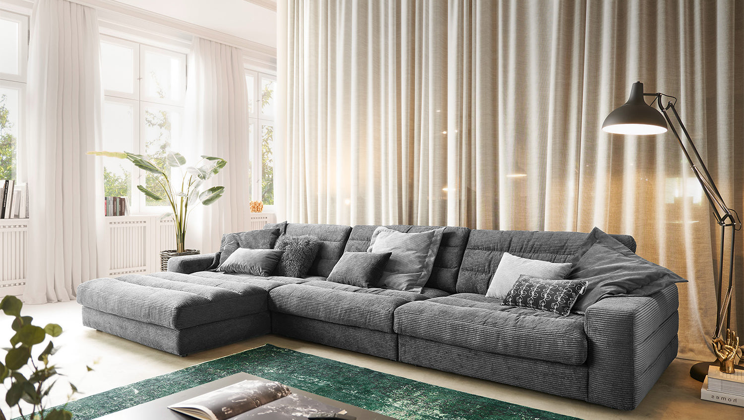 KAWOLA Sofa LANA XL Ecksofa Cord grau