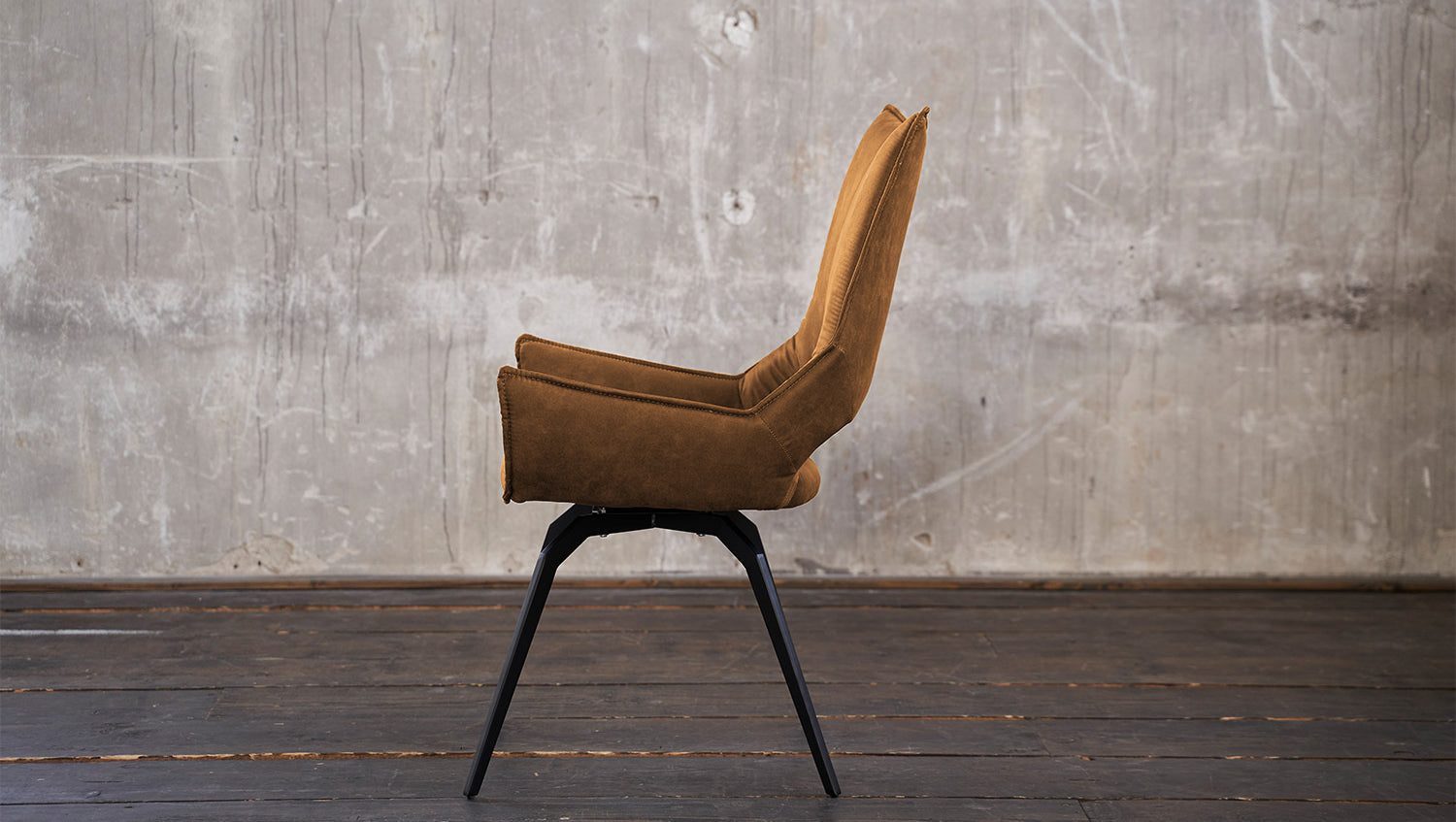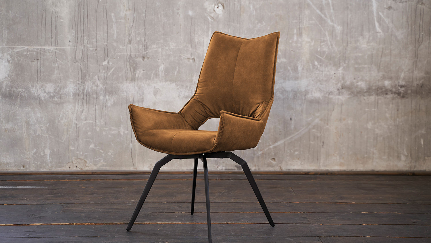 Der Esszimmerstuhl SIVO fällt direkt durch seine Interessante Formgebung ins Auge. Denn sowohl die angenehm gepolsterte Sitzschale, als auch die drehbaren angewinkelten Füße sind außergewöhnlich designt. In der sonst durchgängigen Sitzschale befindet sich eine Aussparung am unteren Teil des unteren Rückens, die den speziellen Look komplettiert. Der Stoffbezug des Drehsessels ist pflegeleicht und zugleich sehr angenehm in der Haptik. Der Polsterstuhl eignet sich wunderbar für den heimischen Ess- oder auch Arbeitsbereich, als Stuhl im Wartebereich oder auch als Besprechungsstuhl im Büro.