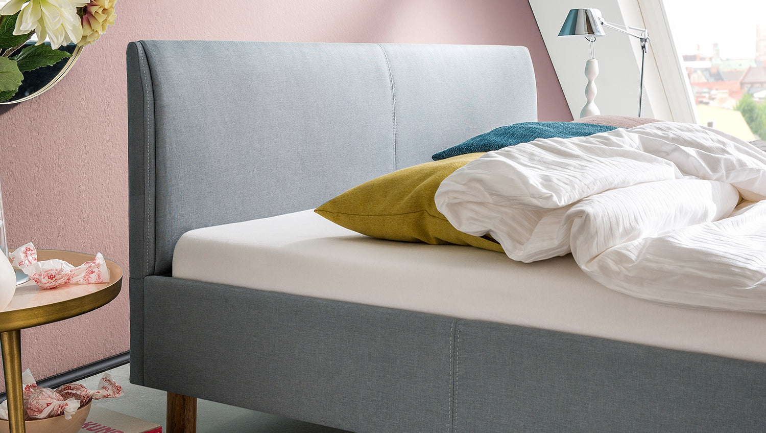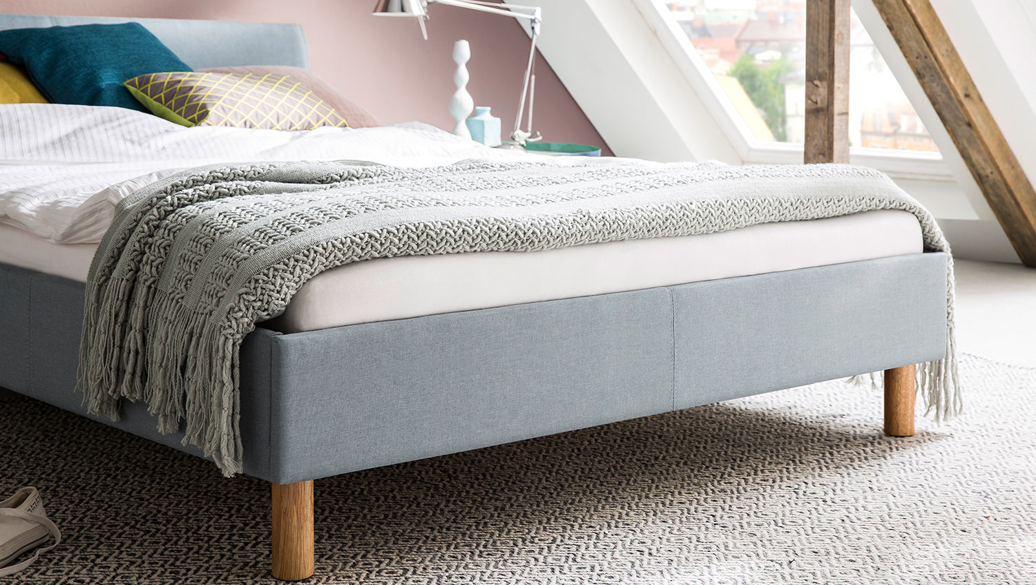 Das LEO Polsterbett überzeugt mit zeitgemäßem Design und glattem Kopfteil. Es verleiht Ihrem Schlafzimmer eine elegante Note, inspiriert von Großstadtlofts.