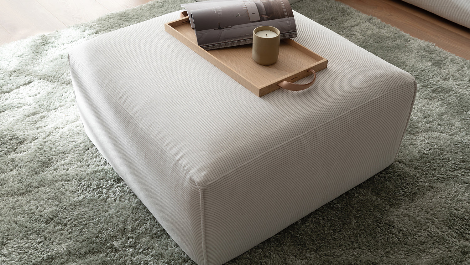 KAWOLA Hocker RANI Polsterhocker Feincord weiß