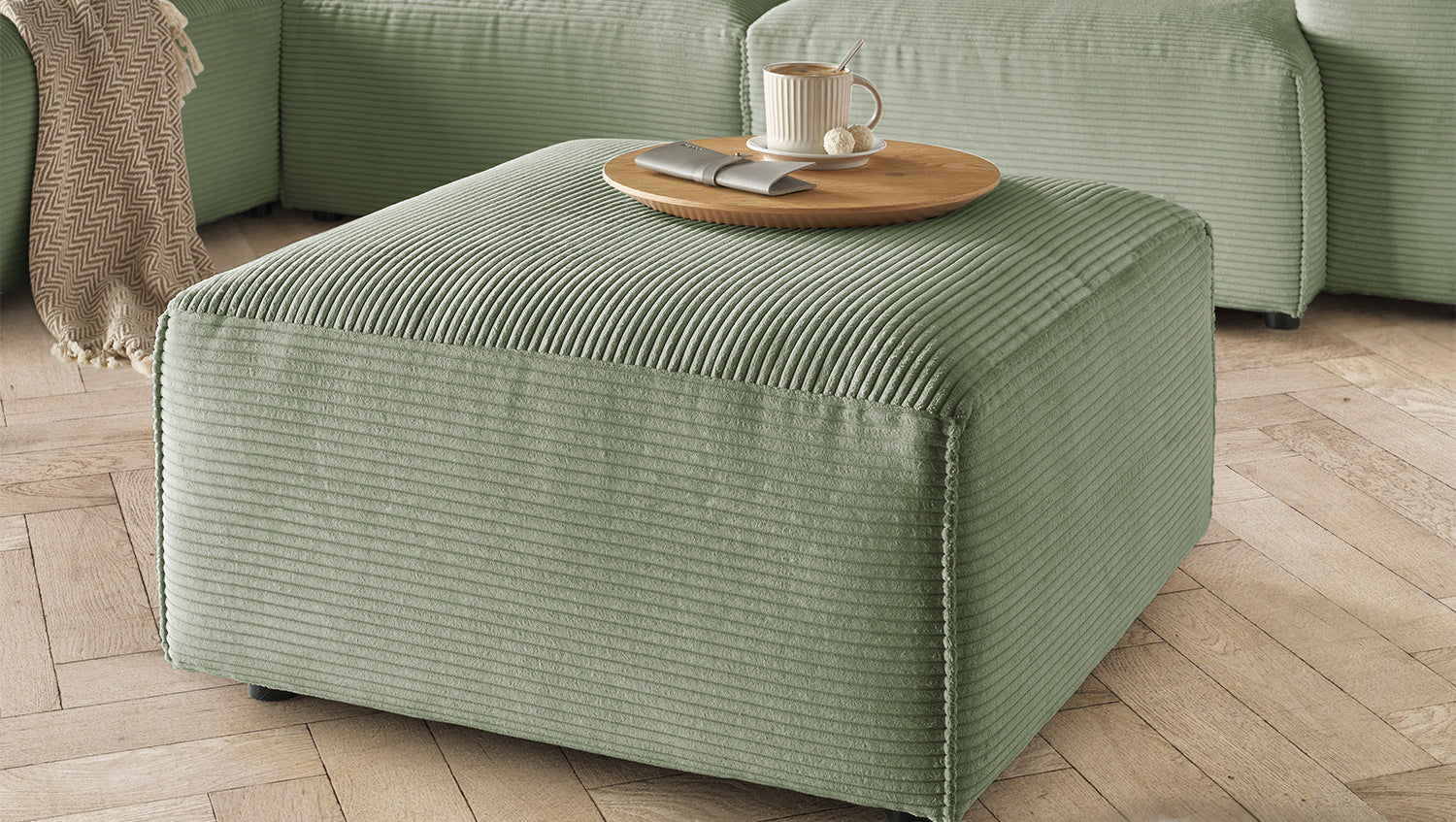 KAWOLA Hocker RANI Polsterhocker Cord olivgrün