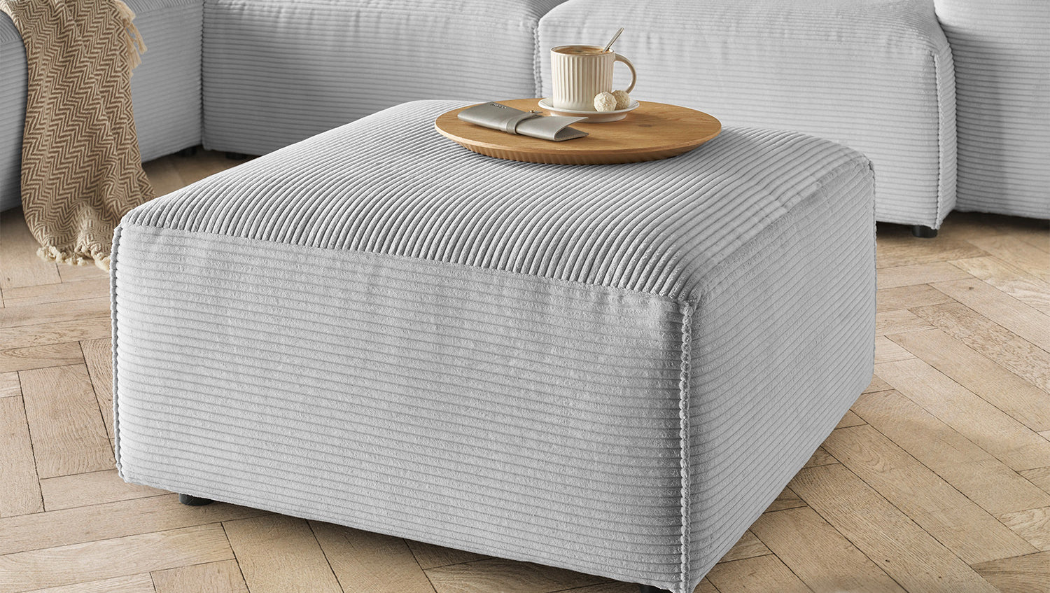 KAWOLA Hocker RANI Polsterhocker Cord hellgrau