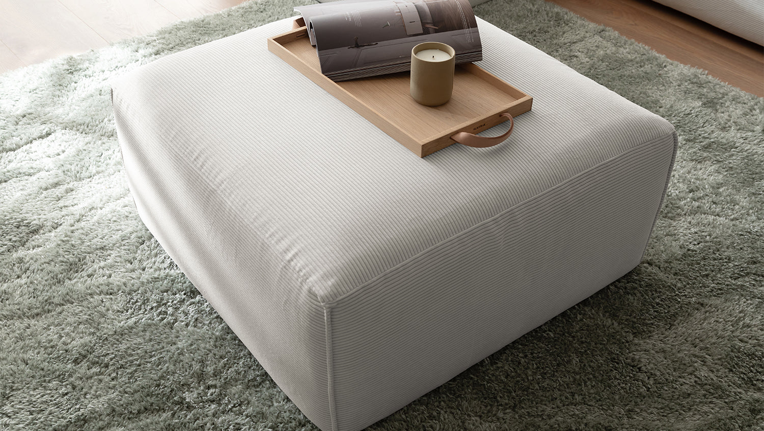 KAWOLA Hocker RANI Polsterhocker Feincord silber