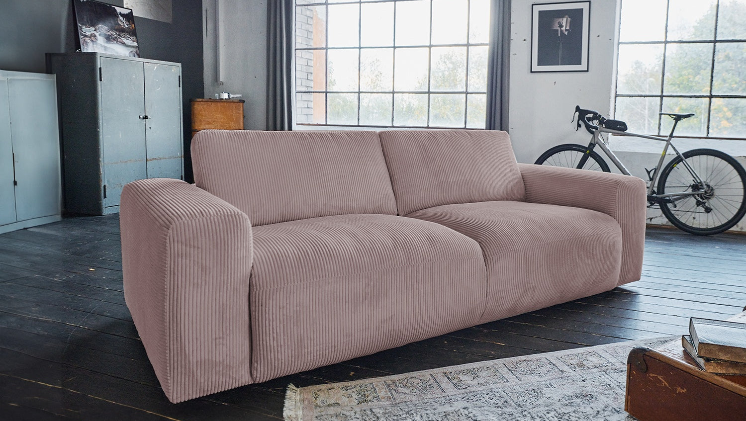 KAWOLA Sofa BODHI 3-Sitzer Cord rosa