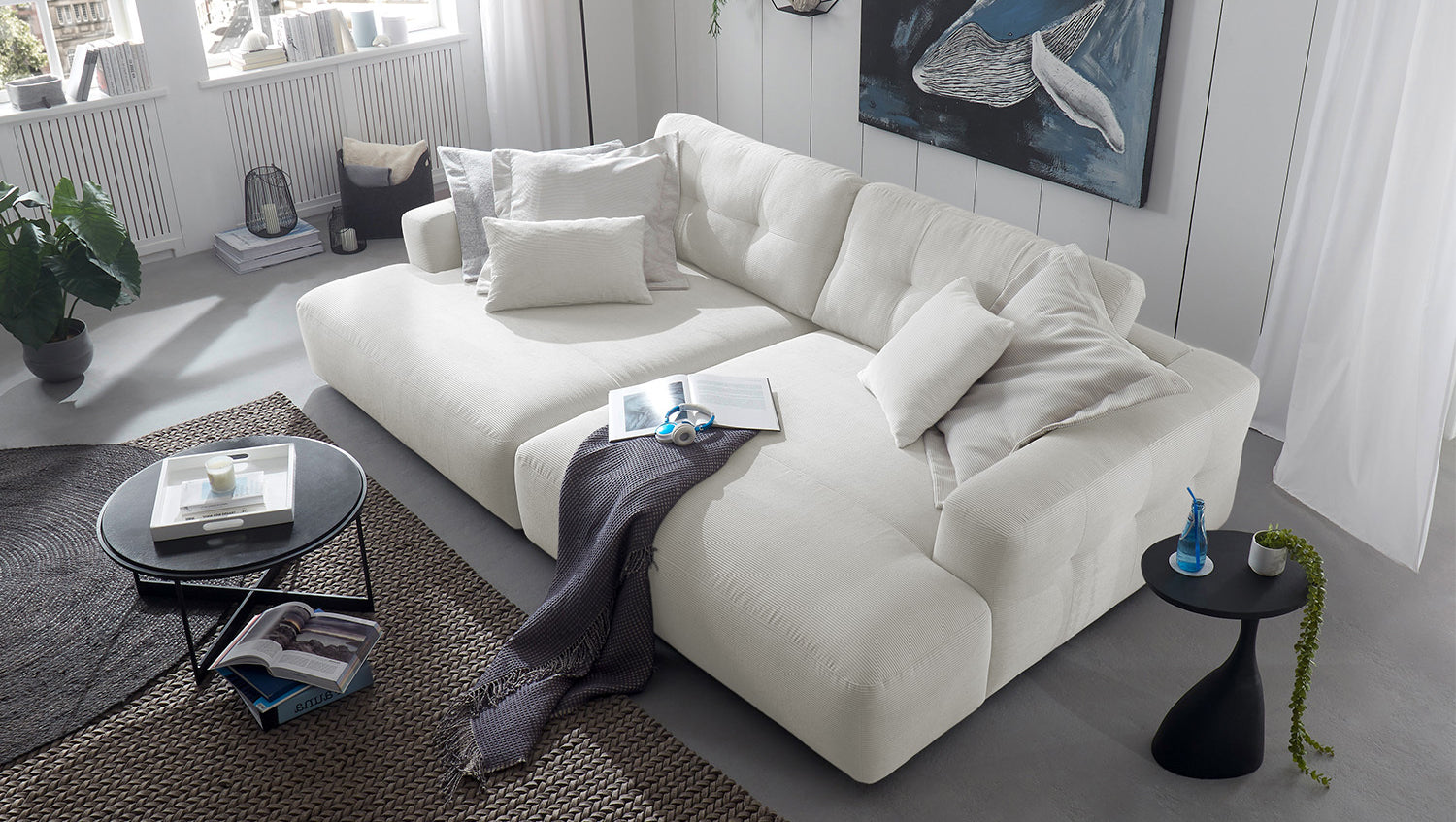 KAWOLA Big Sofa MIKA Feincord weiß