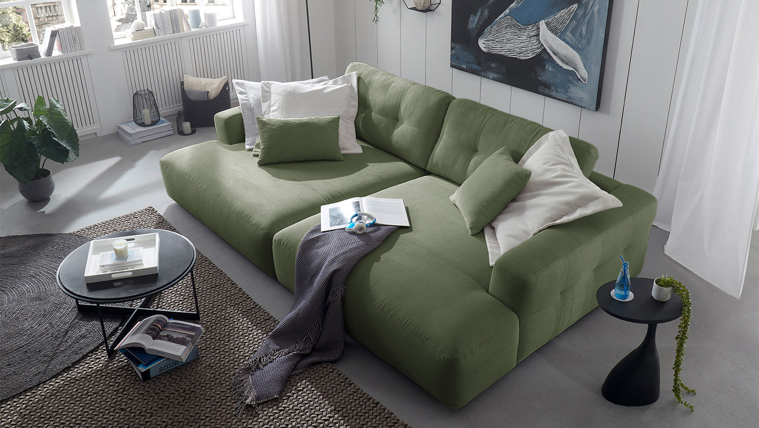 KAWOLA Big Sofa MIKA Feincord olivgrün