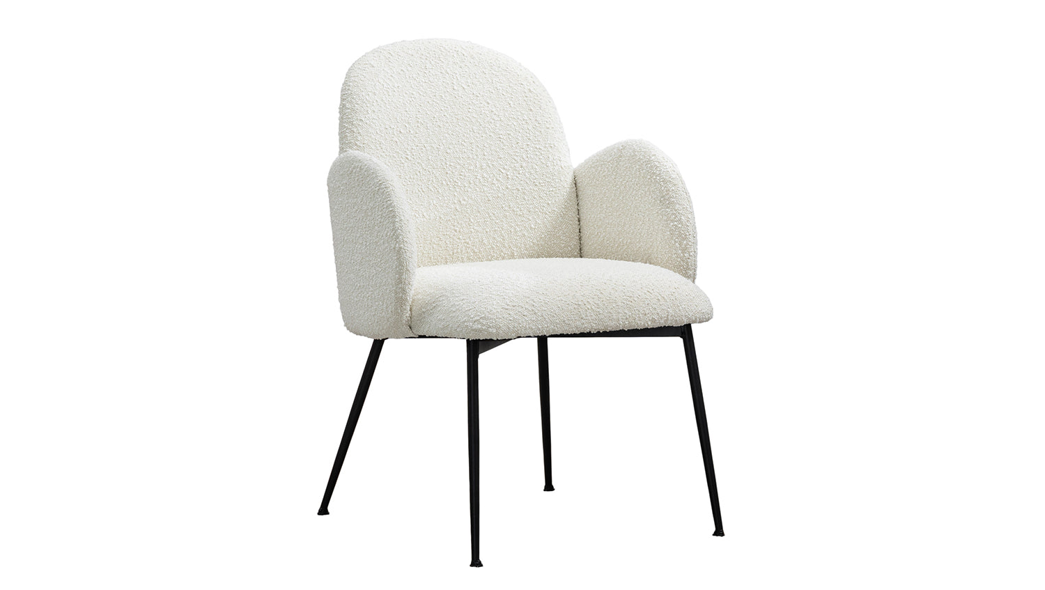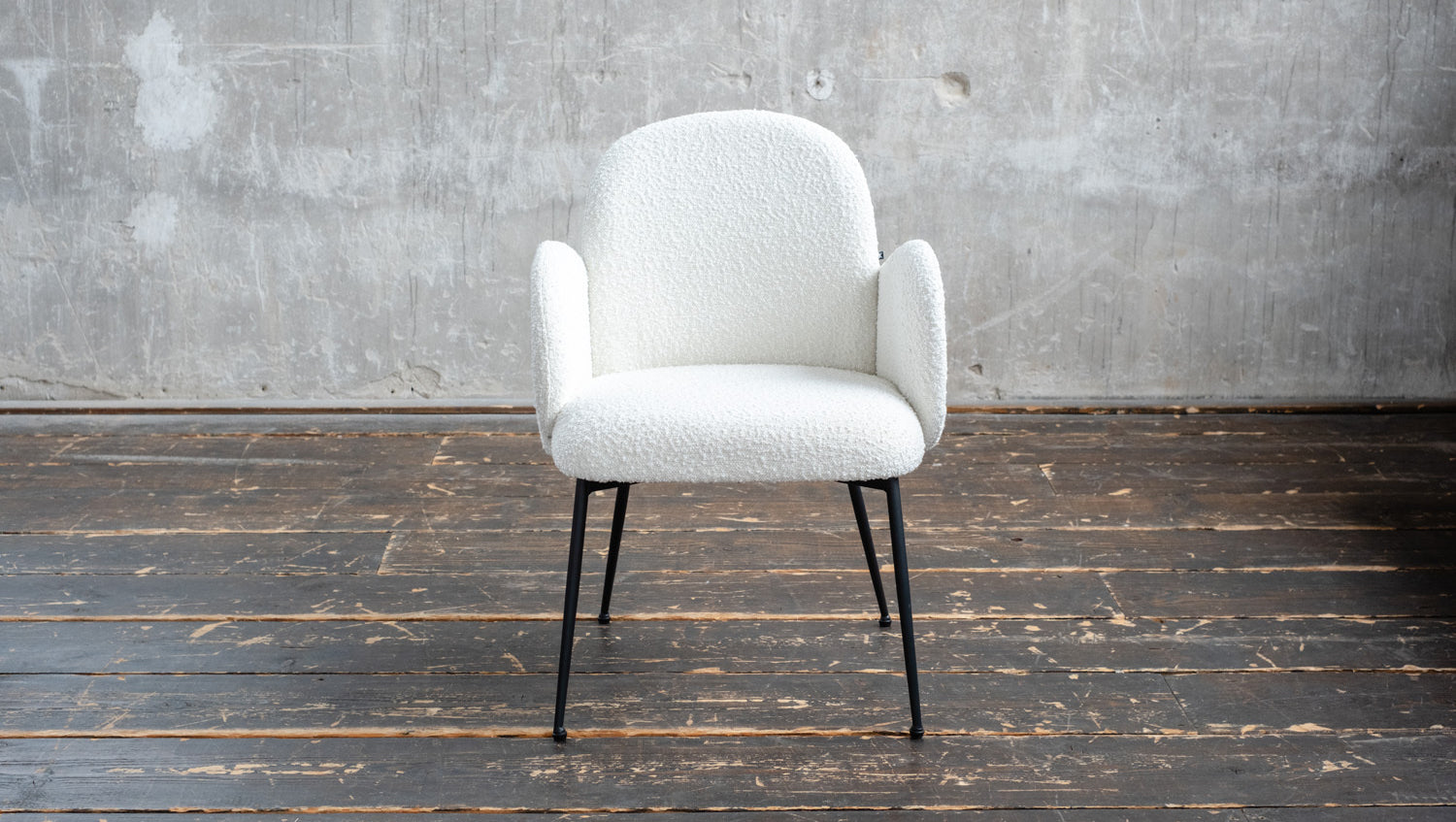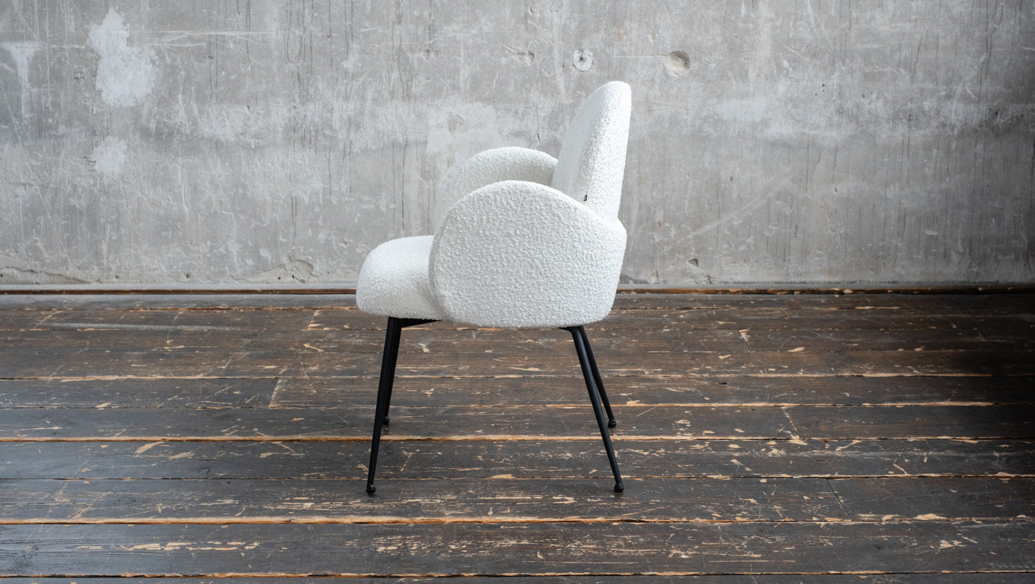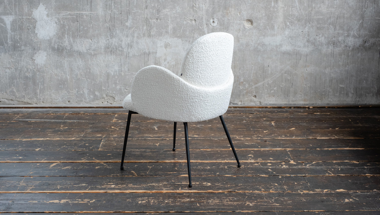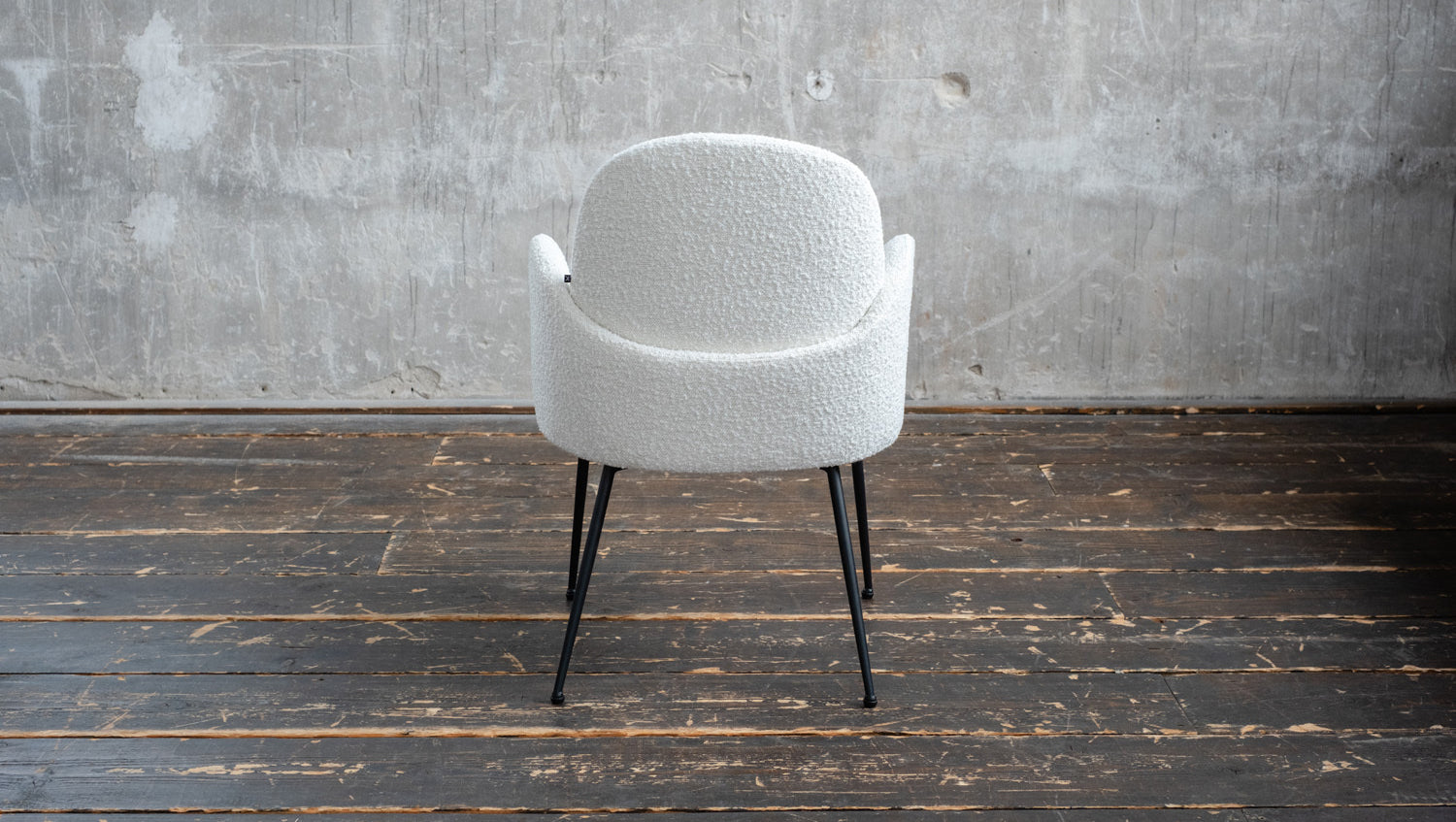 • Sitzschale: Bezug aus hochwertigem Bouclé-Stoff