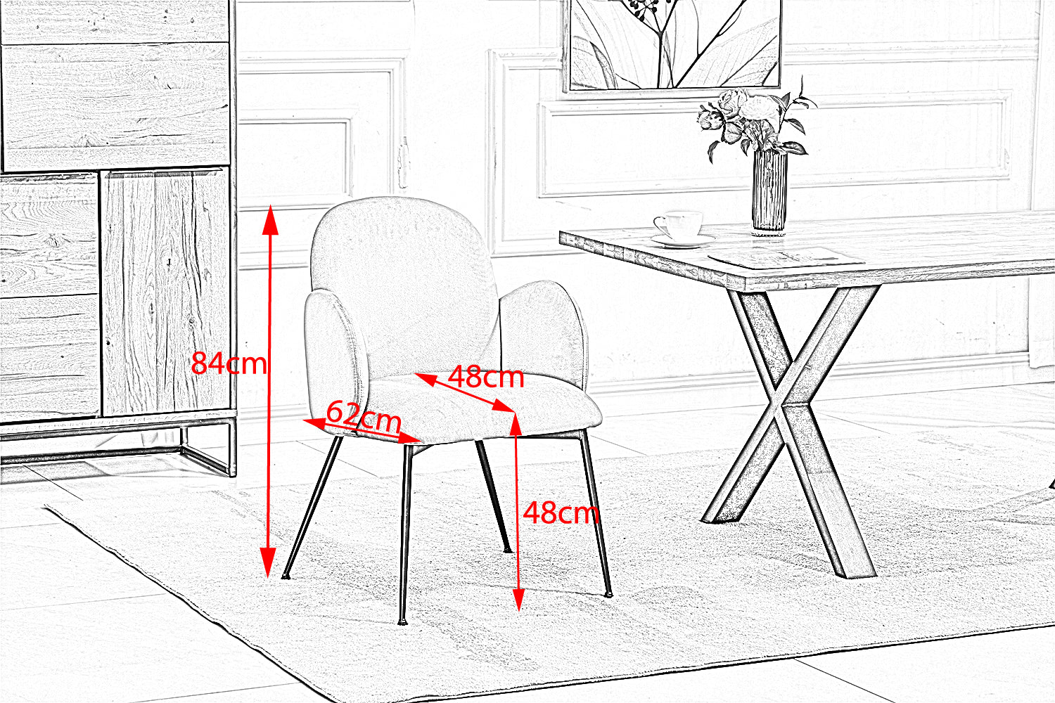 Der DEON Esszimmerstuhl von KAWOLA vereint zeitloses Design und unschlagbaren Komfort, wodurch er zum Herzstück Ihres Essbereichs wird. Der Bouclé-Bezug verleiht dem Stuhl eine besondere Anziehungskraft mit seiner gewellten Oberfläche. Großzügige Abmessungen (59 cm Breite, 62 cm Tiefe, 84 cm Höhe) ermöglichen eine perfekte Integration in verschiedene Raumgrößen. Die ergonomische Sitzhöhe von 48 cm und die großzügige Sitztiefe von 48 cm versprechen stundenlangen Komfort. Neben seinem ansprechenden Design bietet der DEON Esszimmerstuhl herausragenden Sitzkomfort. Die geschwungenen Linien und gepolsterten Armlehnen unterstützen Ihre Körperhaltung, laden zu längeren Mahlzeiten und angeregten Gesprächen ein. Die pulverbeschichteten schwarzen Stahlbeine gewährleisten Stabilität und verleihen dem Stuhl eine moderne Ästhetik. Entscheiden Sie sich für den DEON Esszimmerstuhl von KAWOLA und erleben Sie zeitlose Eleganz und unvergleichlichen Komfort. Verschönern Sie Ihren Essbereich und gönnen Sie sich den Luxus, der Ihnen gebührt.