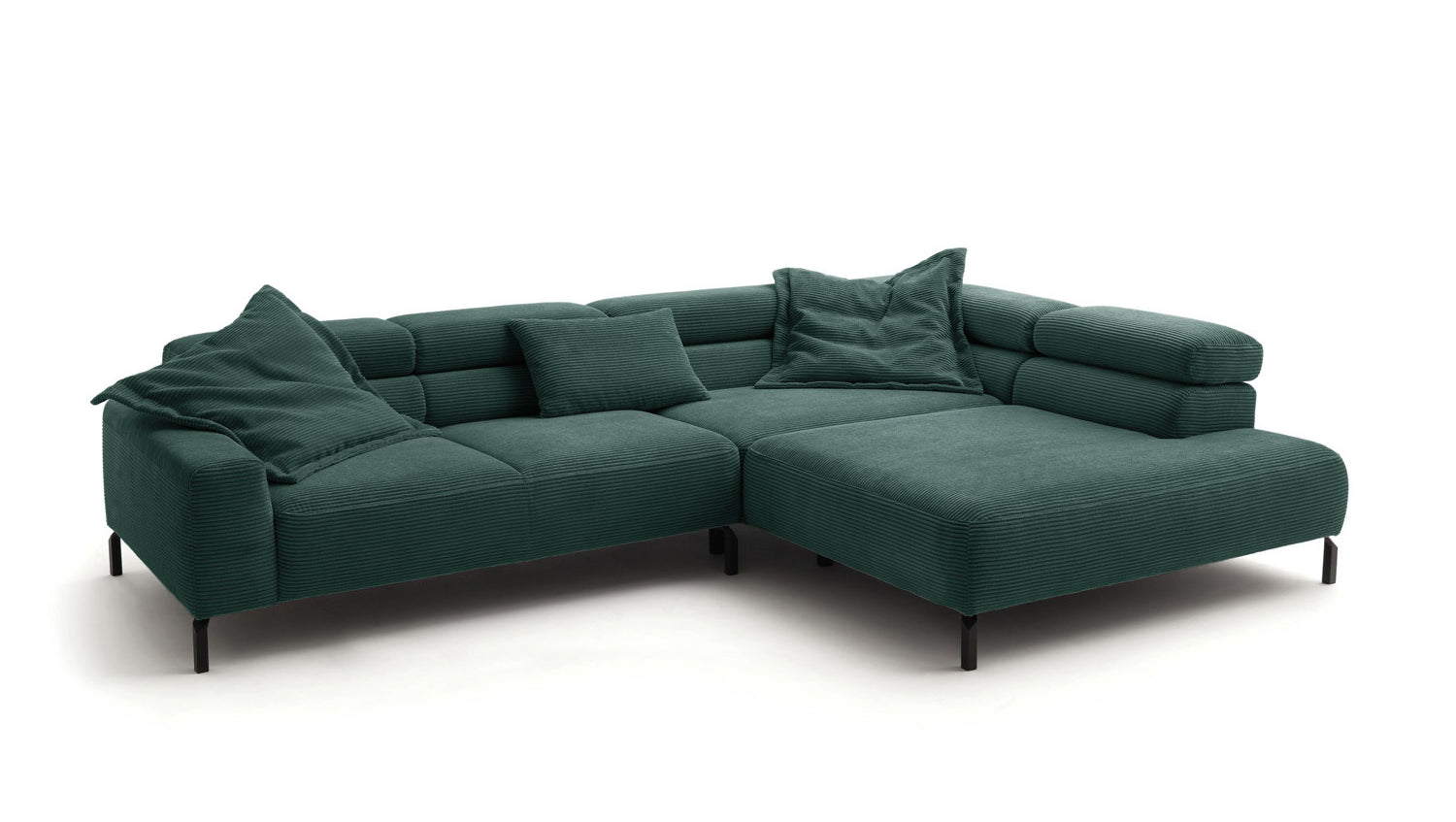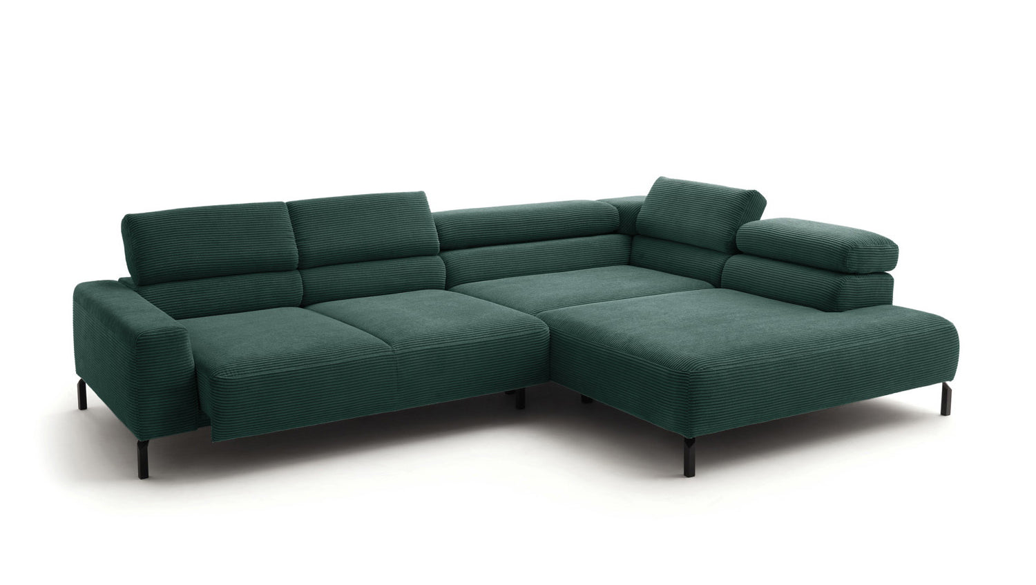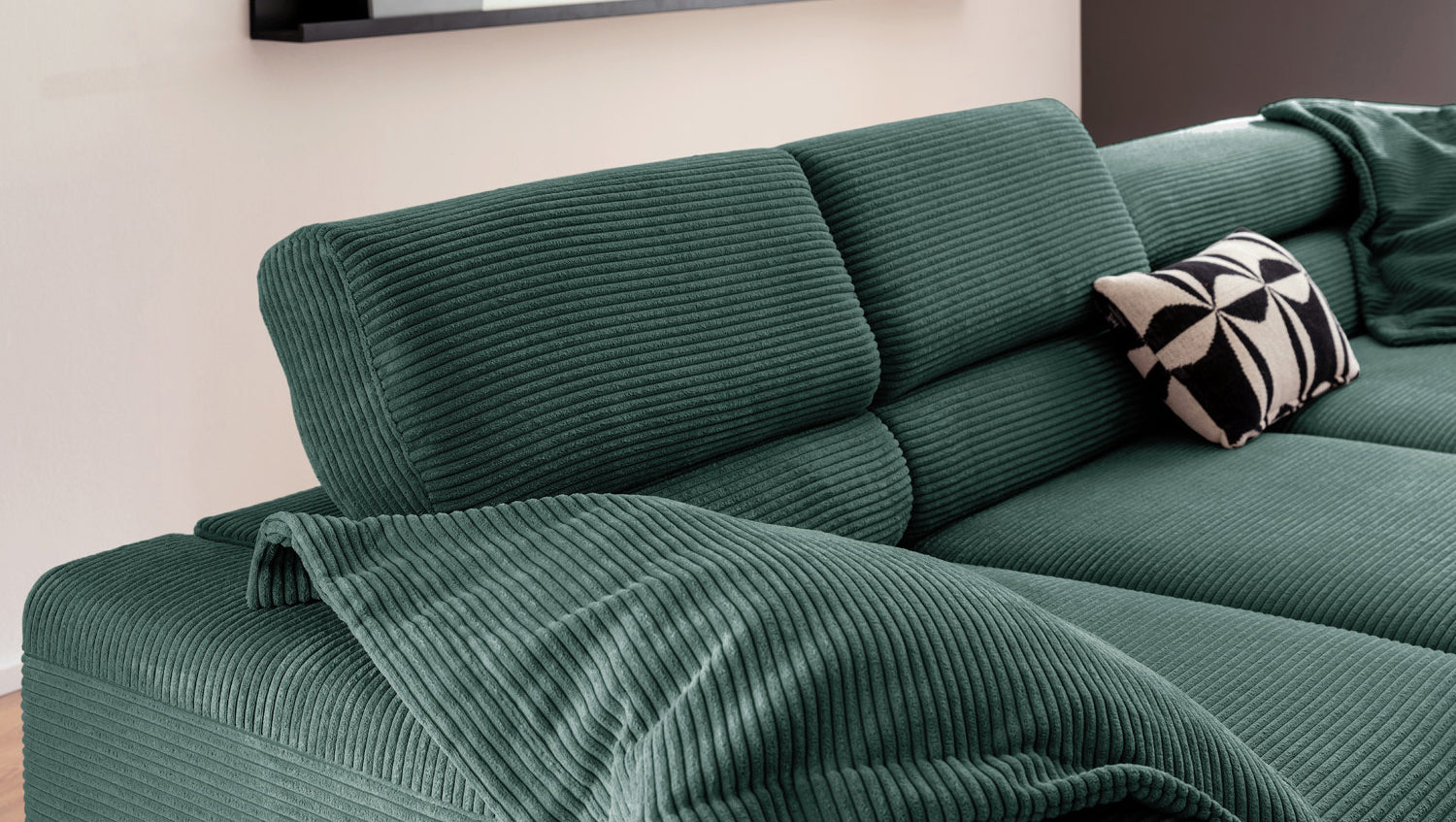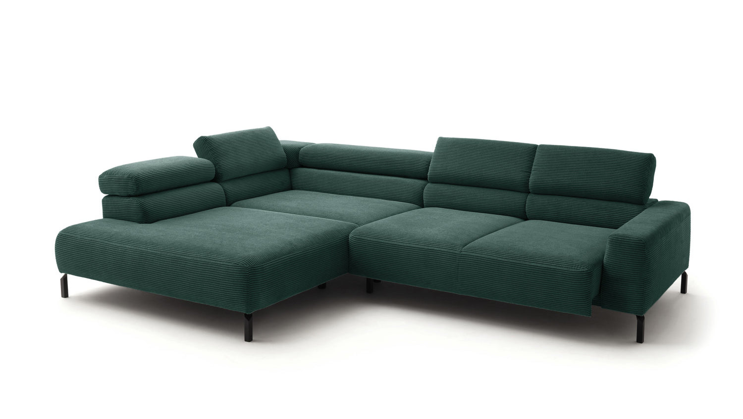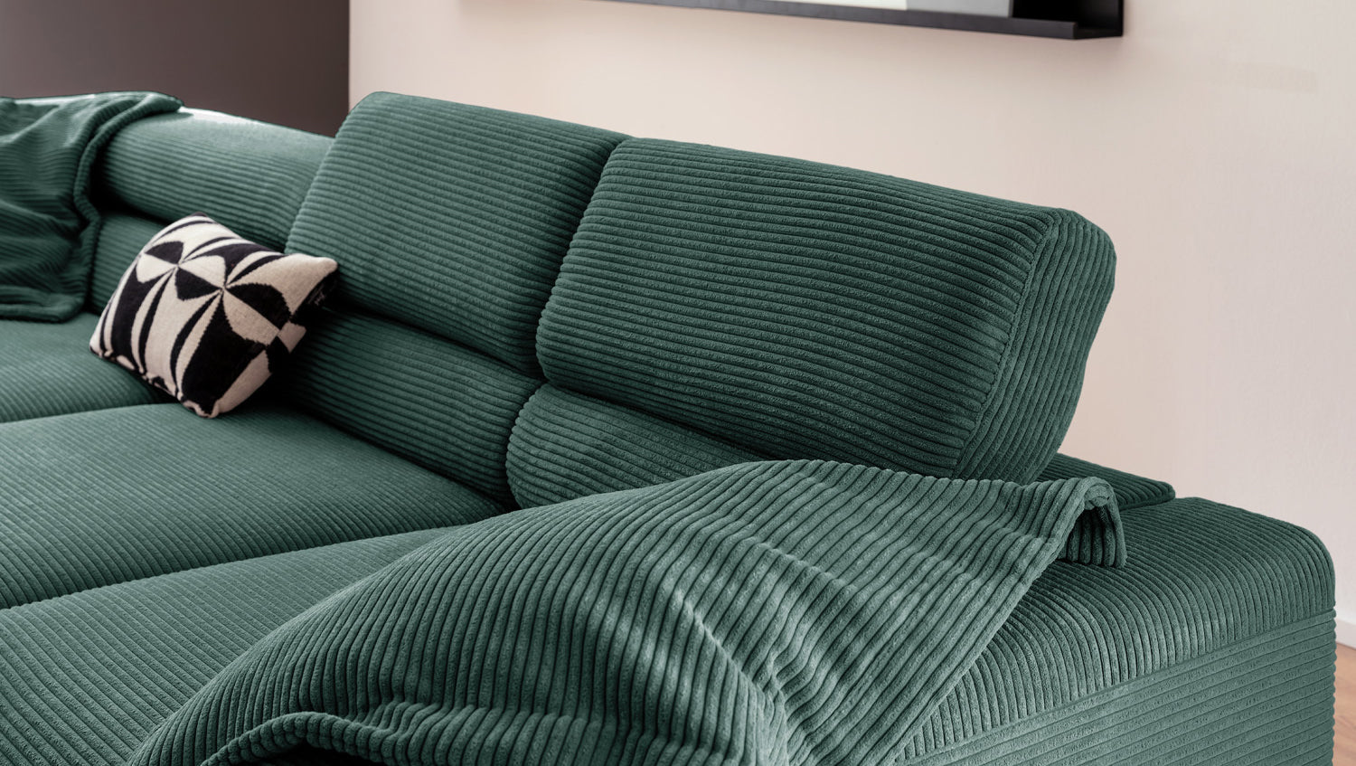 Ein Highlight ist die innovative Kopfteilverstellung, mit der Sie die Kopfteile individuell neigen oder aufrecht stellen können. Perfekt für entspannte Abende beim Lesen oder Filme schauen. Das Ecksofa DELIA vereint Funktionalität und Stil auf höchstem Niveau.