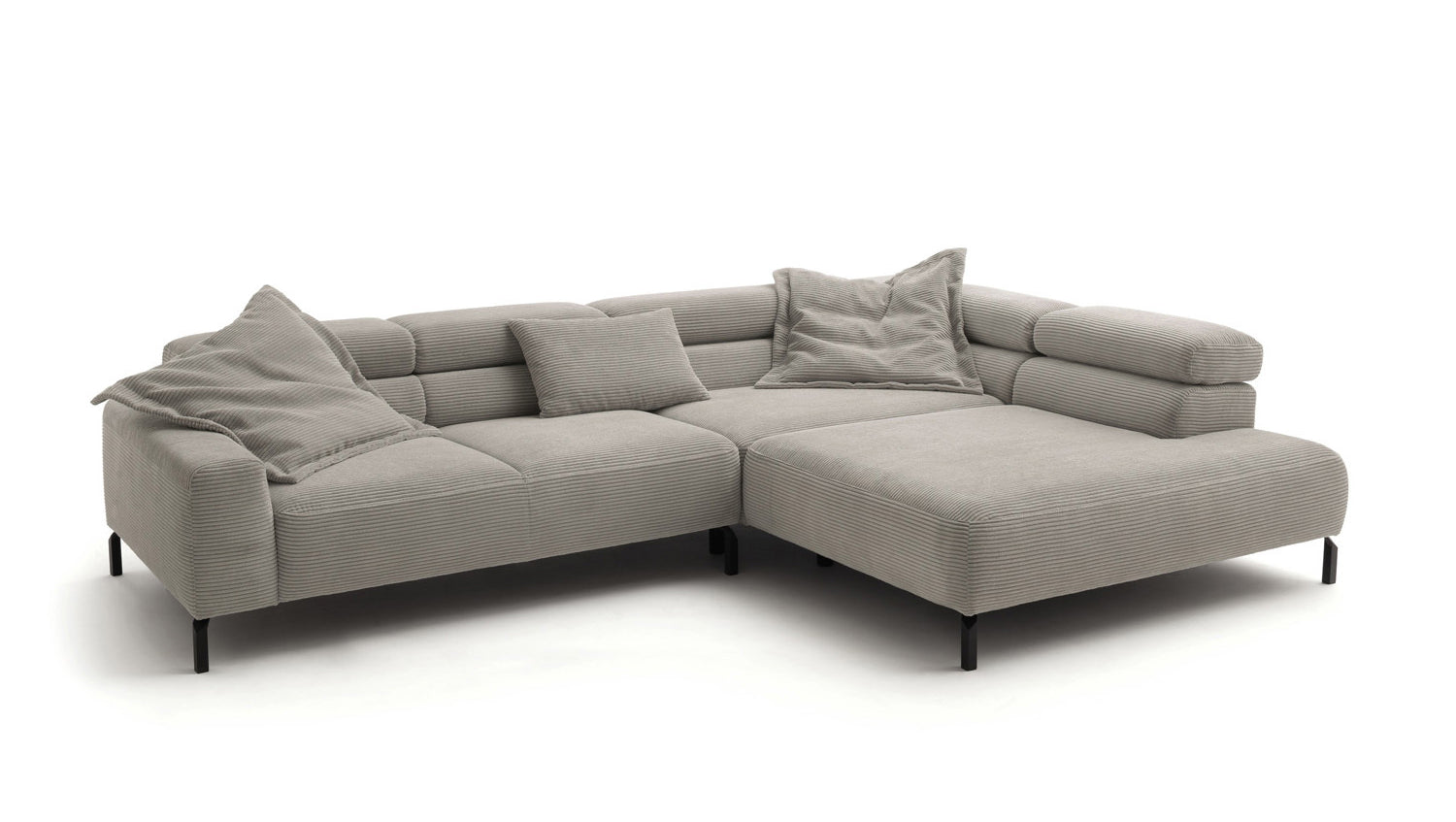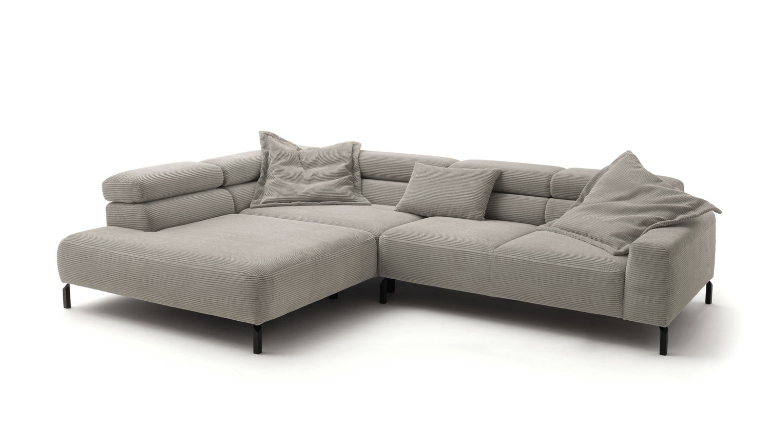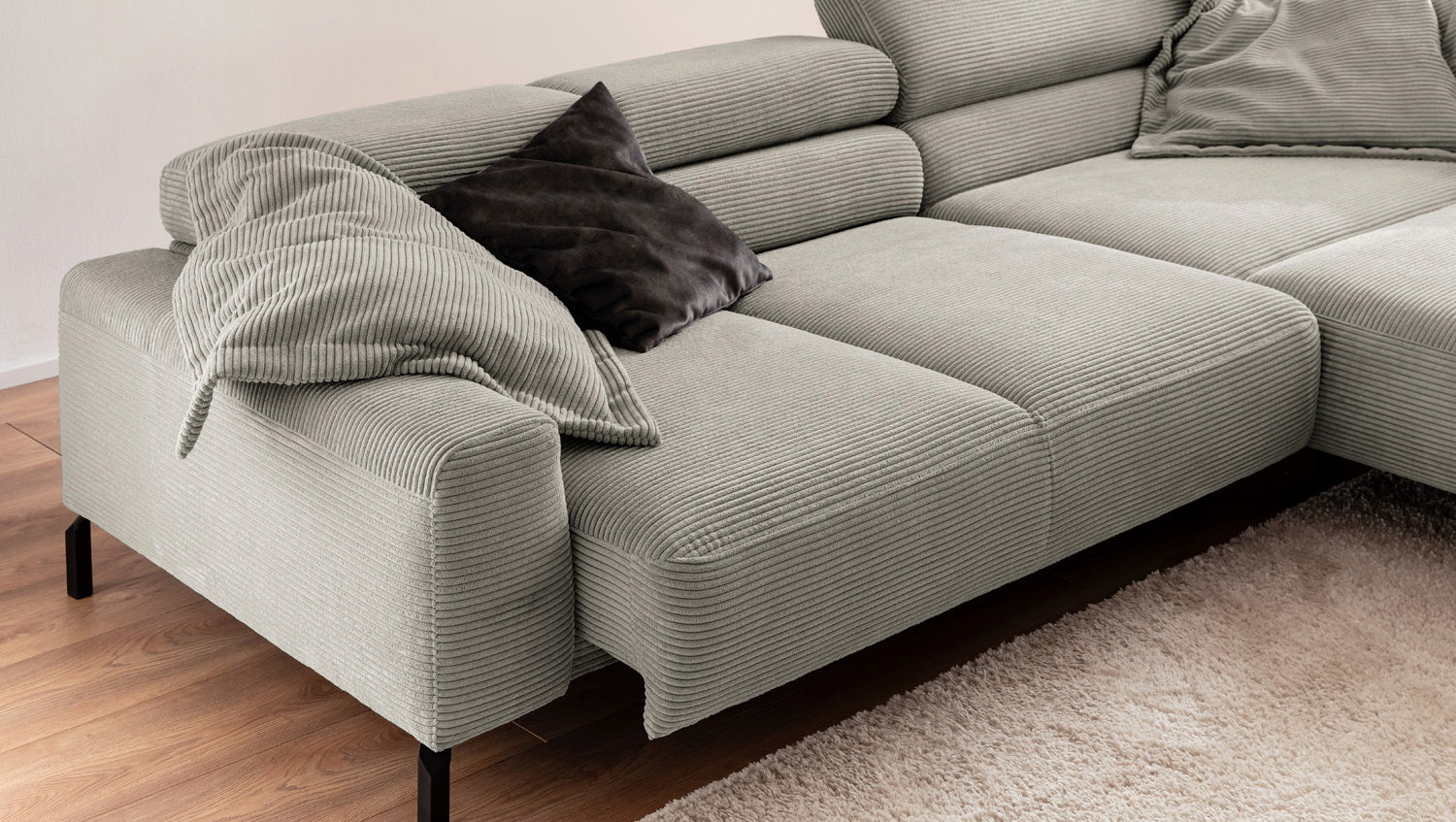 Ein Highlight ist die innovative Kopfteilverstellung, mit der Sie die Kopfteile individuell neigen oder aufrecht stellen können. Perfekt für entspannte Abende beim Lesen oder Filme schauen. Das Ecksofa DELIA vereint Funktionalität und Stil auf höchstem Niveau.