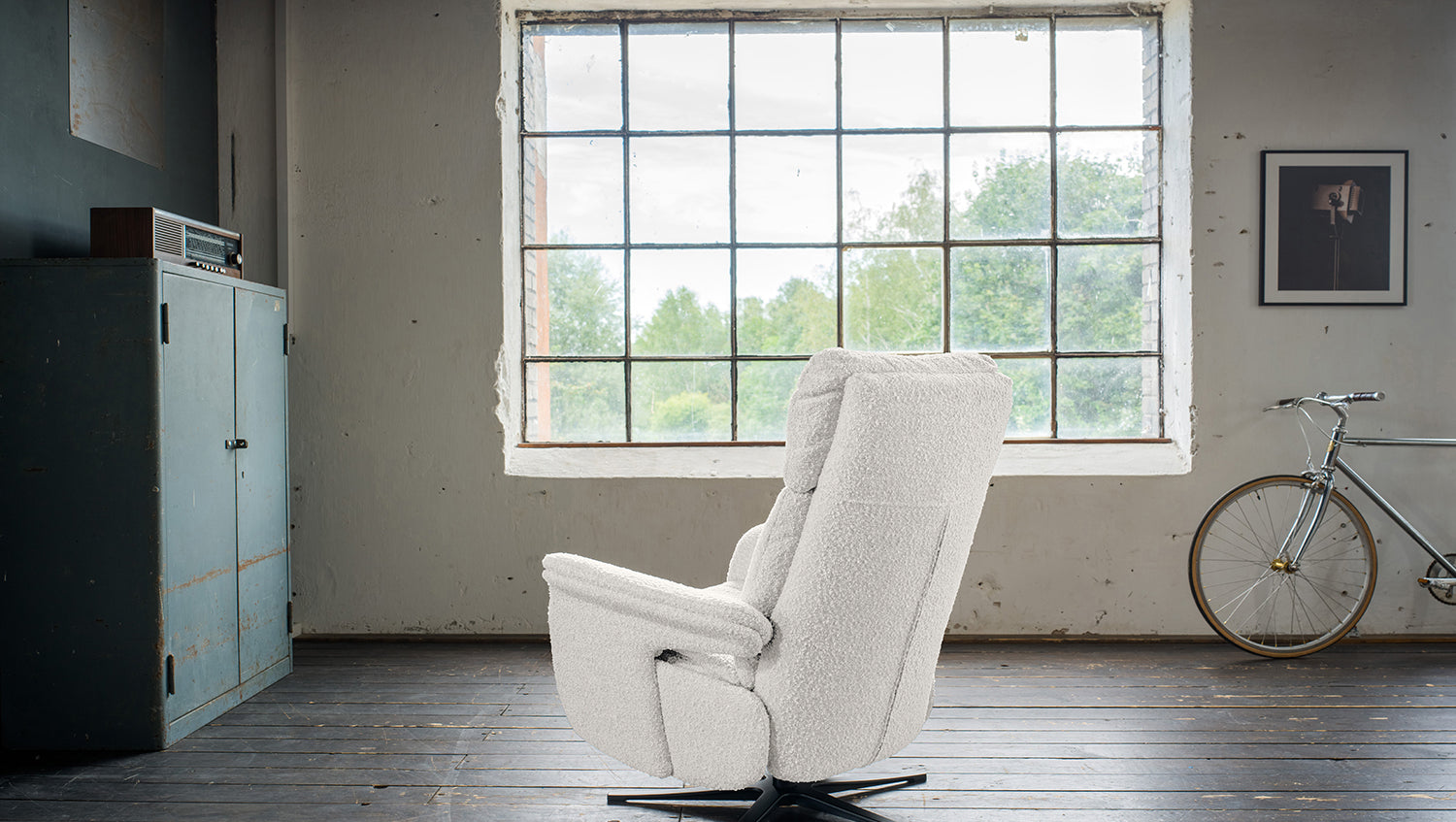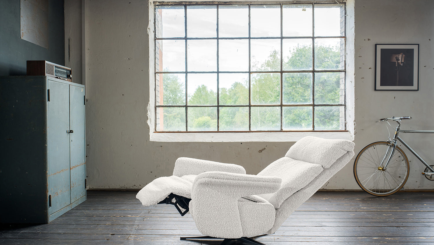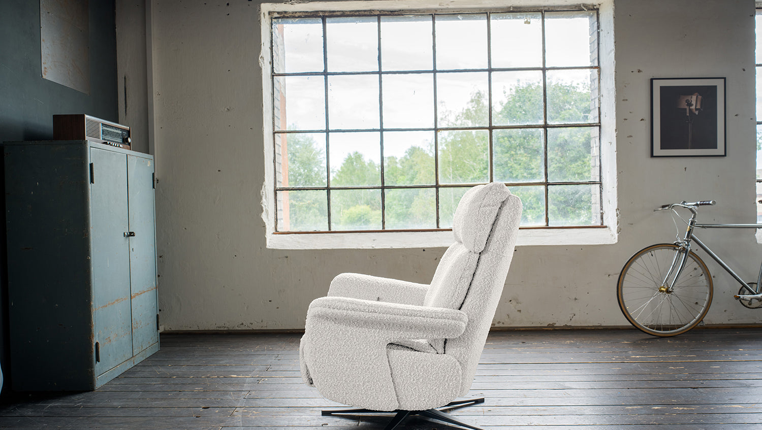 Erleben Sie mit dem Relaxsessel NAMA unvergleichlichen Komfort und verwandeln Sie Ihr Wohnzimmer in eine Wohlfühloase. Dieser bequeme Fernsehsessel mit Bezug aus hochwertigem Bouclé-Stoff besticht durch seine manuell verstellbare Relaxfunktion, die es Ihnen ermöglicht, die Sitzposition ganz nach Ihren Bedürfnissen anzupassen. Durch einen seitlichen Hebel lässt sich der Sessel in jeder gewünschten Position fixieren, während die Fußstütze sich durch sanften Druck ausfährt und eine angenehme Liegeposition ermöglicht. Ein weiteres Highlight ist die 360° Drehfunktion, die Ihnen maximale Bewegungsfreiheit bietet. Die verstellbare Kopfstütze sorgt für zusätzlichen Komfort und Unterstützung im Nackenbereich.