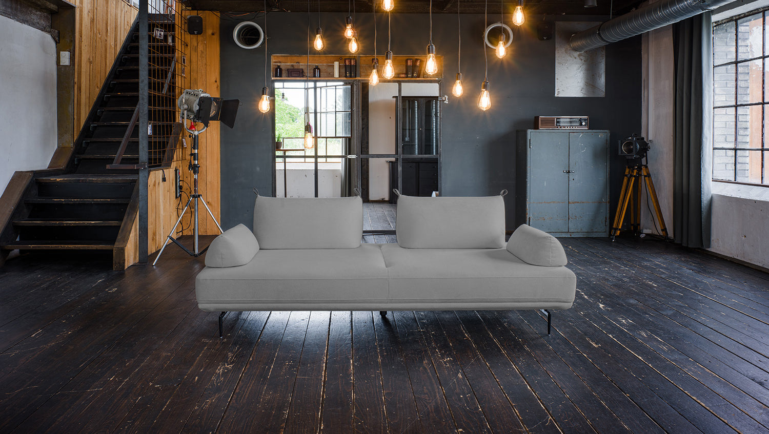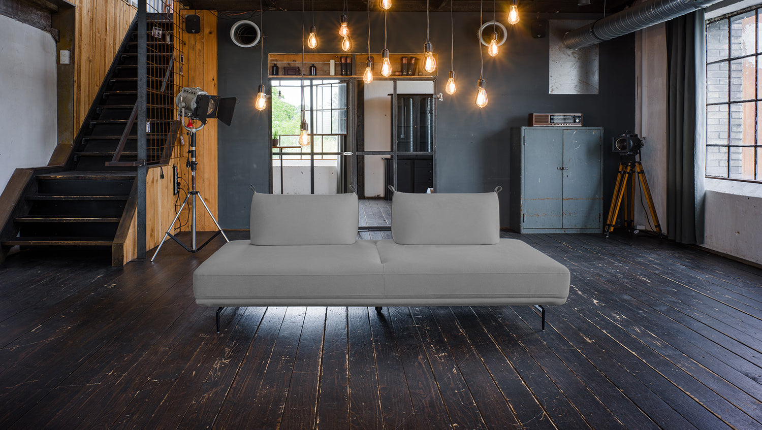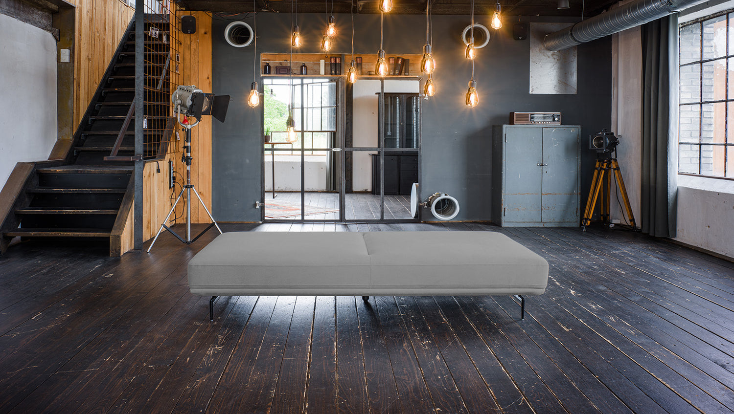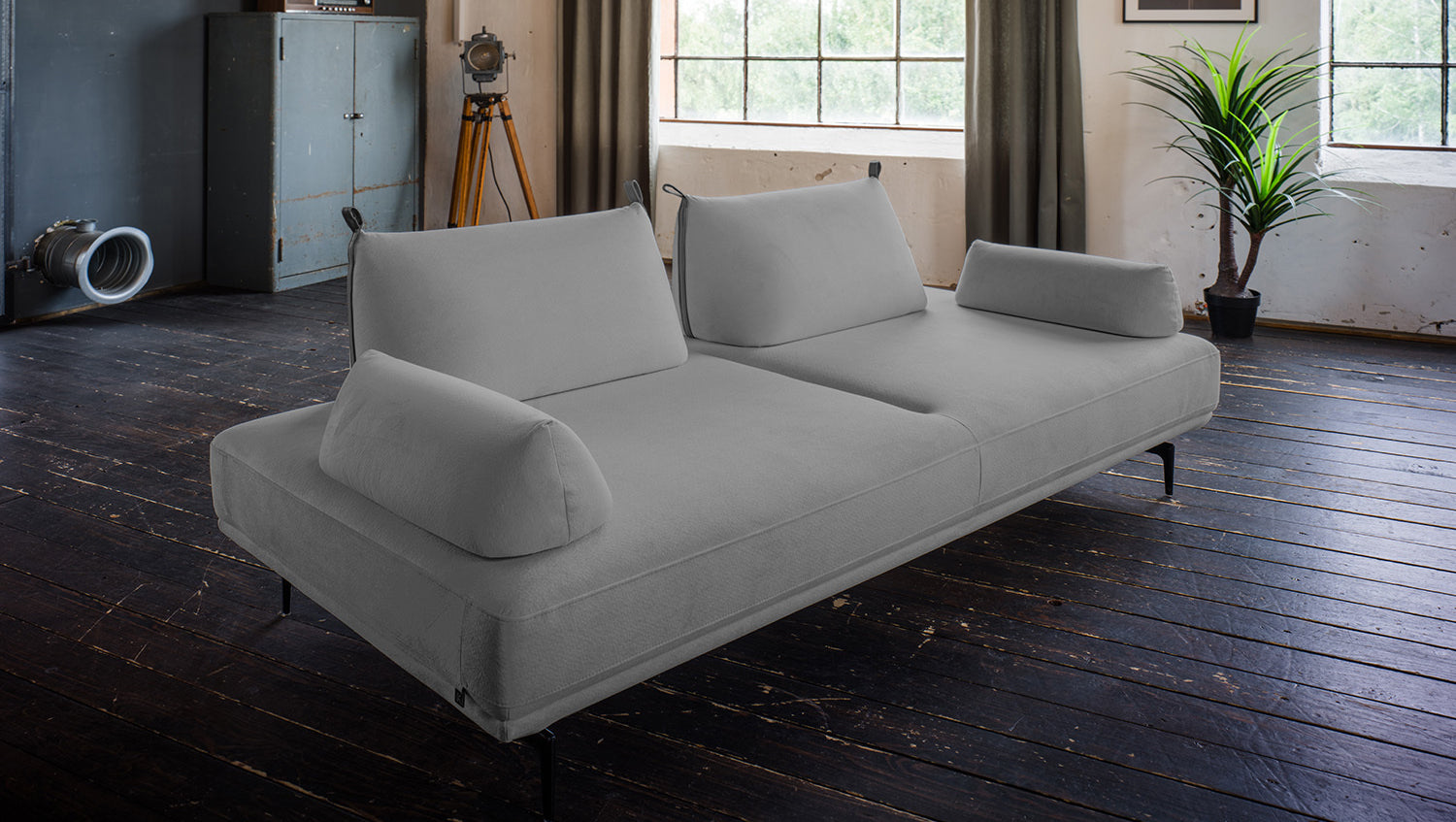 KAWOLA Sofa CANE Schlafsofa Daybed Stoff grau