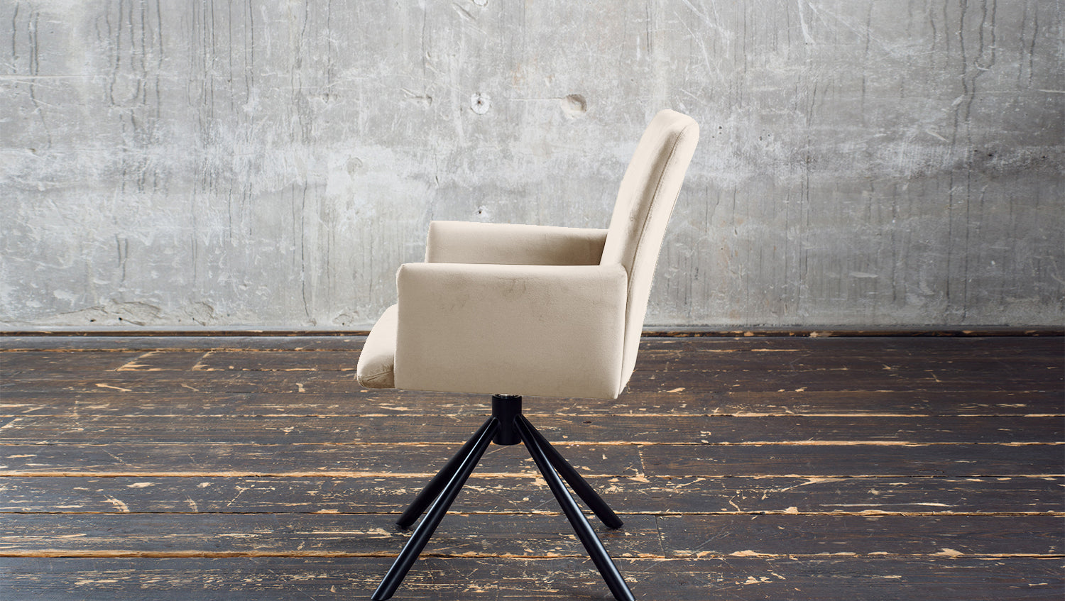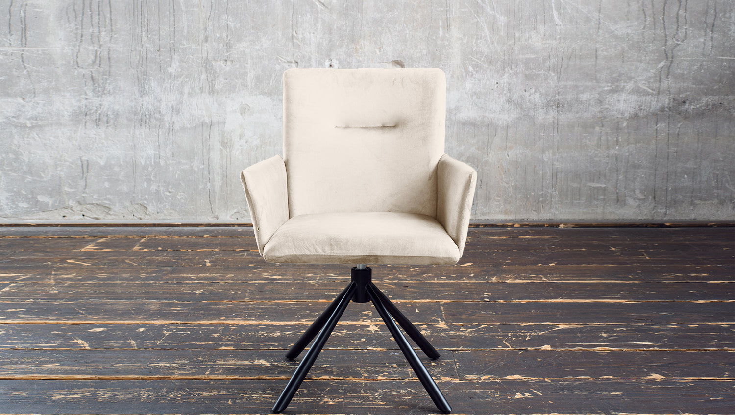 KAWOLA Esszimmerstuhl KYRA Drehstuhl Velvet cremeweiß
