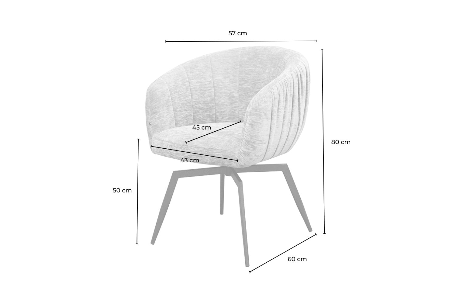 Der Esszimmerstuhl LIMA von KAWOLA vereint stilvolles Design mit höchstem Sitzkomfort. Mit einer Breite von 57 cm, einer Tiefe von 60 cm und einer Höhe von 80 cm bietet dieser Drehstuhl eine perfekte Mischung aus Funktionalität und Eleganz. Die Sitzfläche sorgt mit einer Höhe von 50 cm, einer Tiefe von 45 cm und einer Breite von 43 cm für ein bequemes Sitzerlebnis, das durch die ergonomische Form unterstützt wird.
