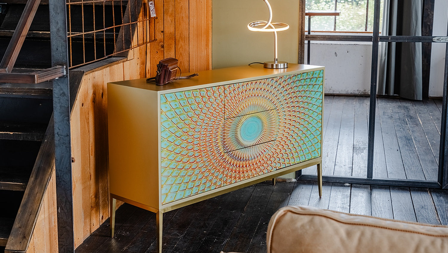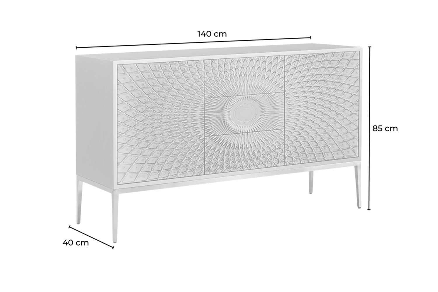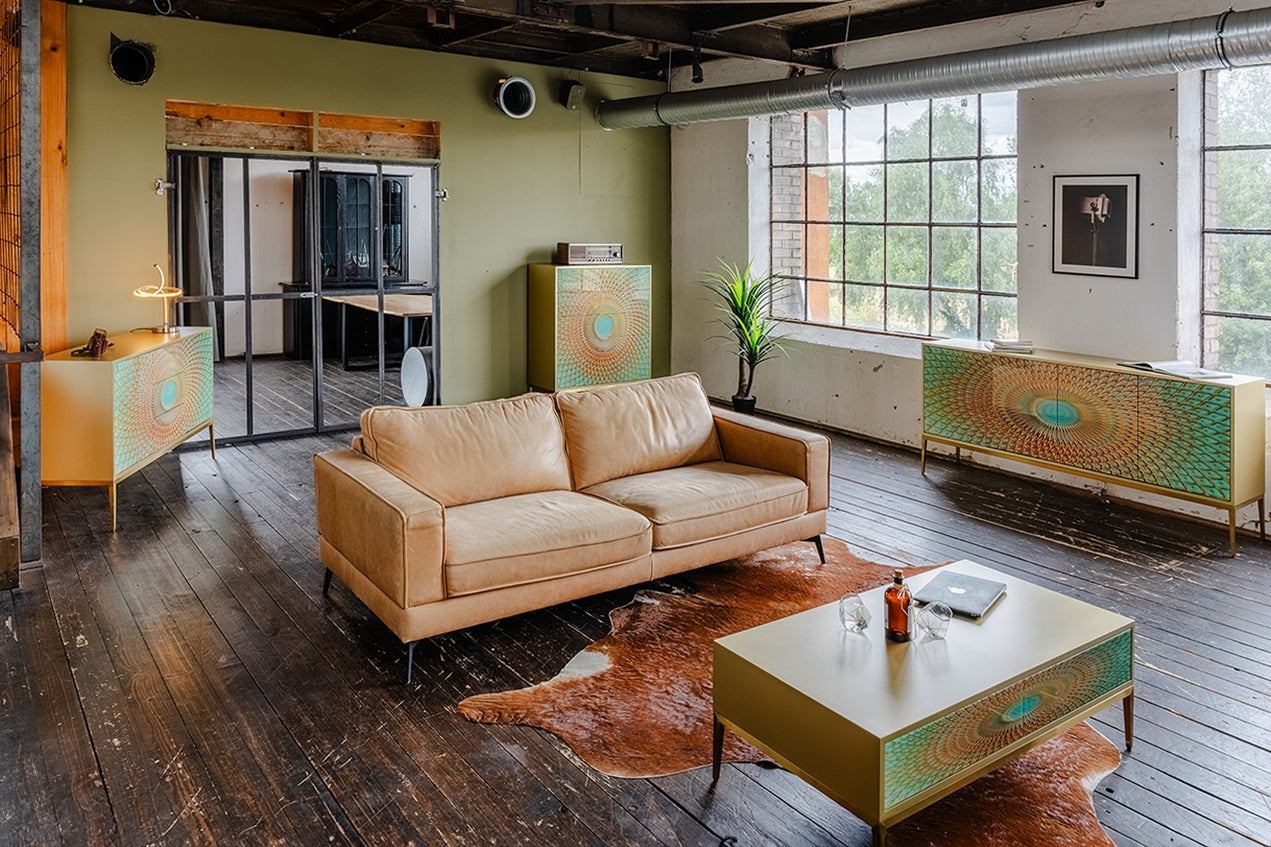 Das KAWOLA Sideboard LAGO besticht durch seine elegante Kombination aus ausgefallenem Design und praktischer Funktionalität. Die Türen und Schubladen sind mit Hartglas beschichtet und weisen goldfarbene Verzierungen auf, die die Form eines Pfauenauges ergeben. Die zwei Türen und drei Schubladen bieten großzügigen Stauraum und lassen sich dank des komfortablen Push-to-Open-Mechanismus mühelos öffnen. Die goldfarbenen Füße aus gebürstetem Edelstahl sorgen für einen modernen, zeitlosen Look und bieten gleichzeitig stabile Standfestigkeit. Variabel einsetzbare Einlegeböden ermöglichen eine flexible Nutzung des Innenraums und passen sich Ihren Bedürfnissen an. Das Sideboard LAGO von KAWOLA fügt sich perfekt in jedes Wohnambiente ein und ist ideal für Liebhaber von außergewöhnlichen, eleganten Möbelstücken. Entdecken Sie die perfekte Kombination aus Design und Funktionalität mit dem Sideboard LAGO!