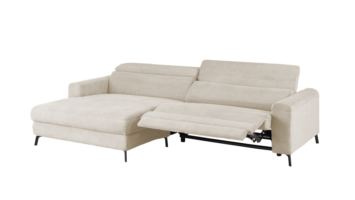 KAWOLA Sofa LAISKA Ecksofa Relaxfunktion teilmotorisch Cord cremeweiß