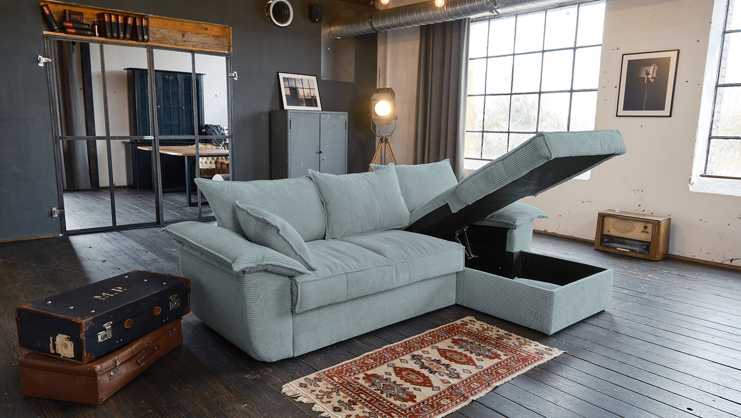 Das KAWOLA Sofa DAMETO ist das neue Allroundtalent in unserem Sortiment. Mit dem Bezug aus angesagtem Cord-Stoff ist es nicht nur ein echter Hingucker, seine angenehm weiche Polsterung sorgt auch für höchsten Sitzkomfort. Vor allem begeistert es aber mit seinen verschiedenen Zusatzfunktionen. Mit wenigen Handgriffen kann aus Ecksofa ein komfortables Schlafsofa gemacht werden - einfach den unteren Teil des 2-Sitzers nach vorne ziehen, anschließend nach oben klappen, fertig! Aber das ist noch nicht alles: Der Longchair verfügt über einen großzügigen Stauraum, der sich durch Hochklappen der Sitzfläche mühelos öffnen lässt. Außerdem ist der Longchair beidseitig montierbar und bietet Ihnen somit maximale Flexibilität für Ihre Wohnraumgestaltung. Egal, ob links oder rechts – passen Sie das Sofa ganz einfach an Ihre Raumverhältnisse an. Bequem, elegant, vielseitig und praktisch - das Sofa DAMETO wird ganz bestimmt der neue Star in Ihrem Wohnzimmer!