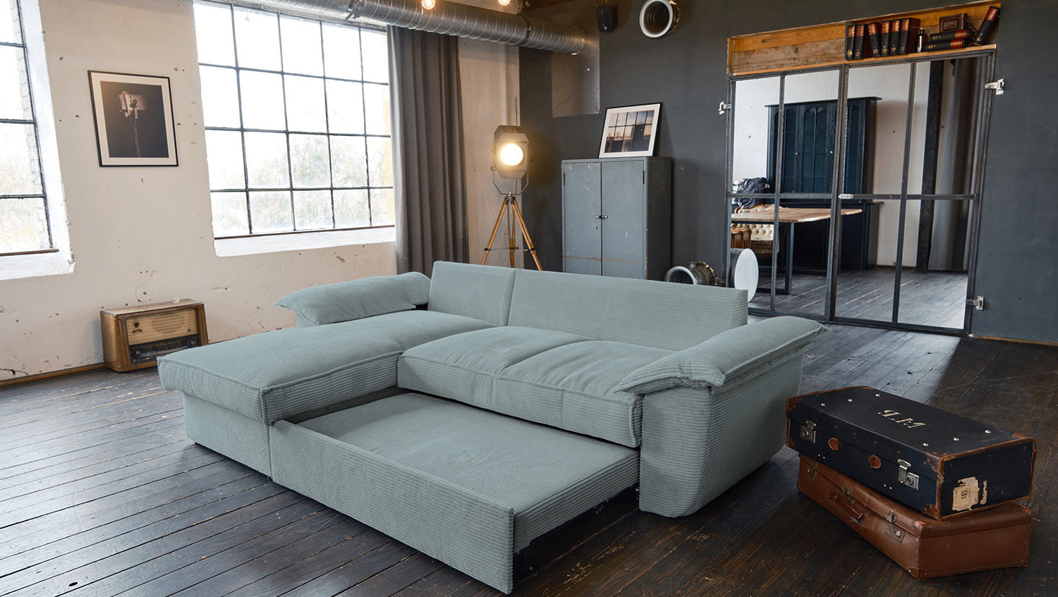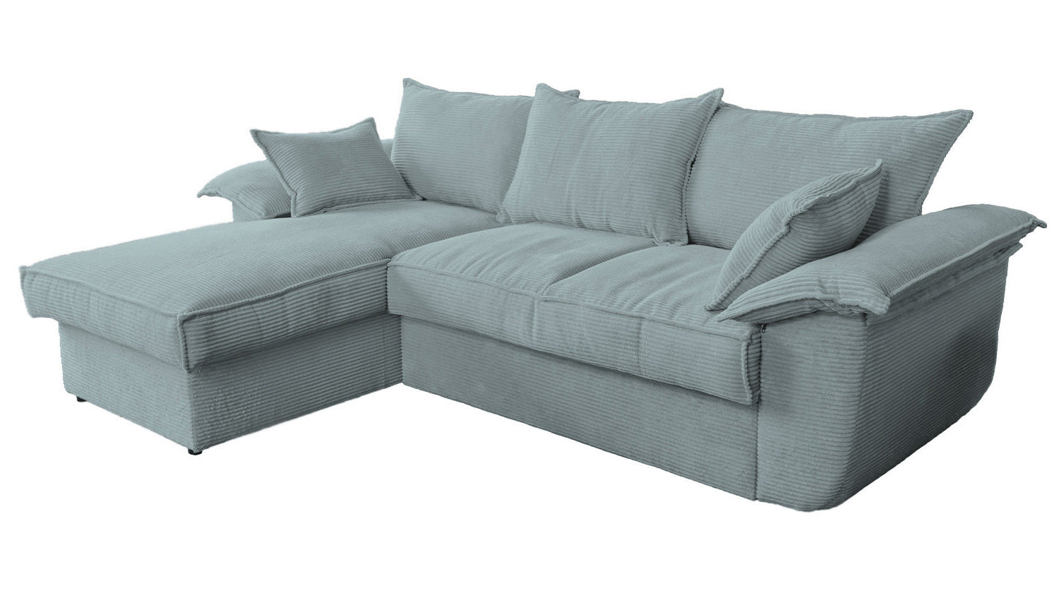 KAWOLA Sofa DAMETO Ecksofa Bettsofa Schlafsofa mit Stauraum Cord hellblau