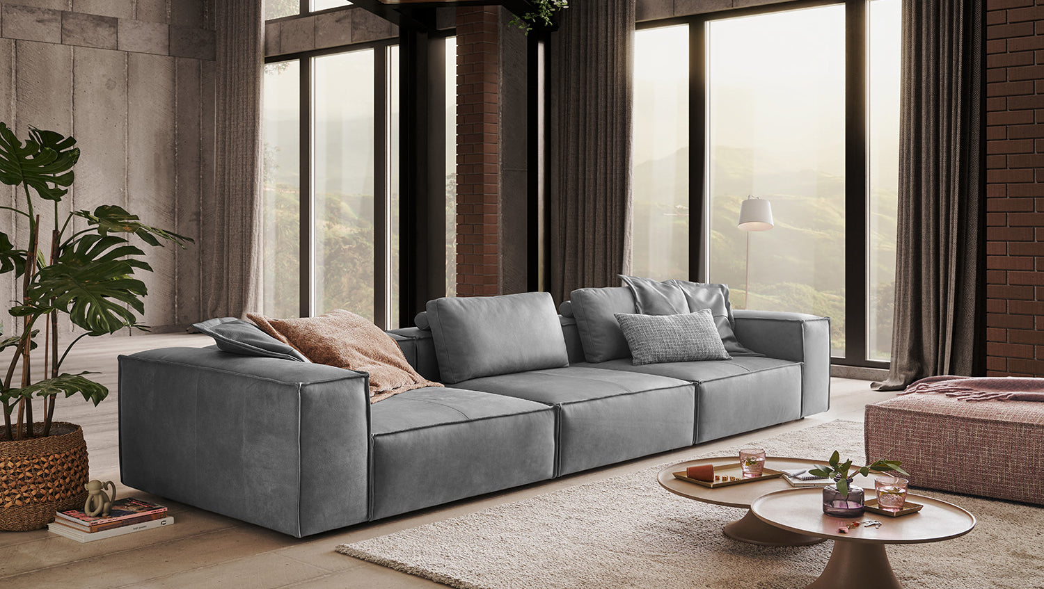 Der weiche Sitzkomfort lädt zum Entspannen ein – ob alleine oder mit Gästen. Mit einer Breite von 366 cm bietet CARMO großzügig Platz für gemütliche Stunden. Der Rundumbezug sorgt dafür, dass das Sofa frei im Raum stehen kann – ideal für moderne Wohnkonzepte.