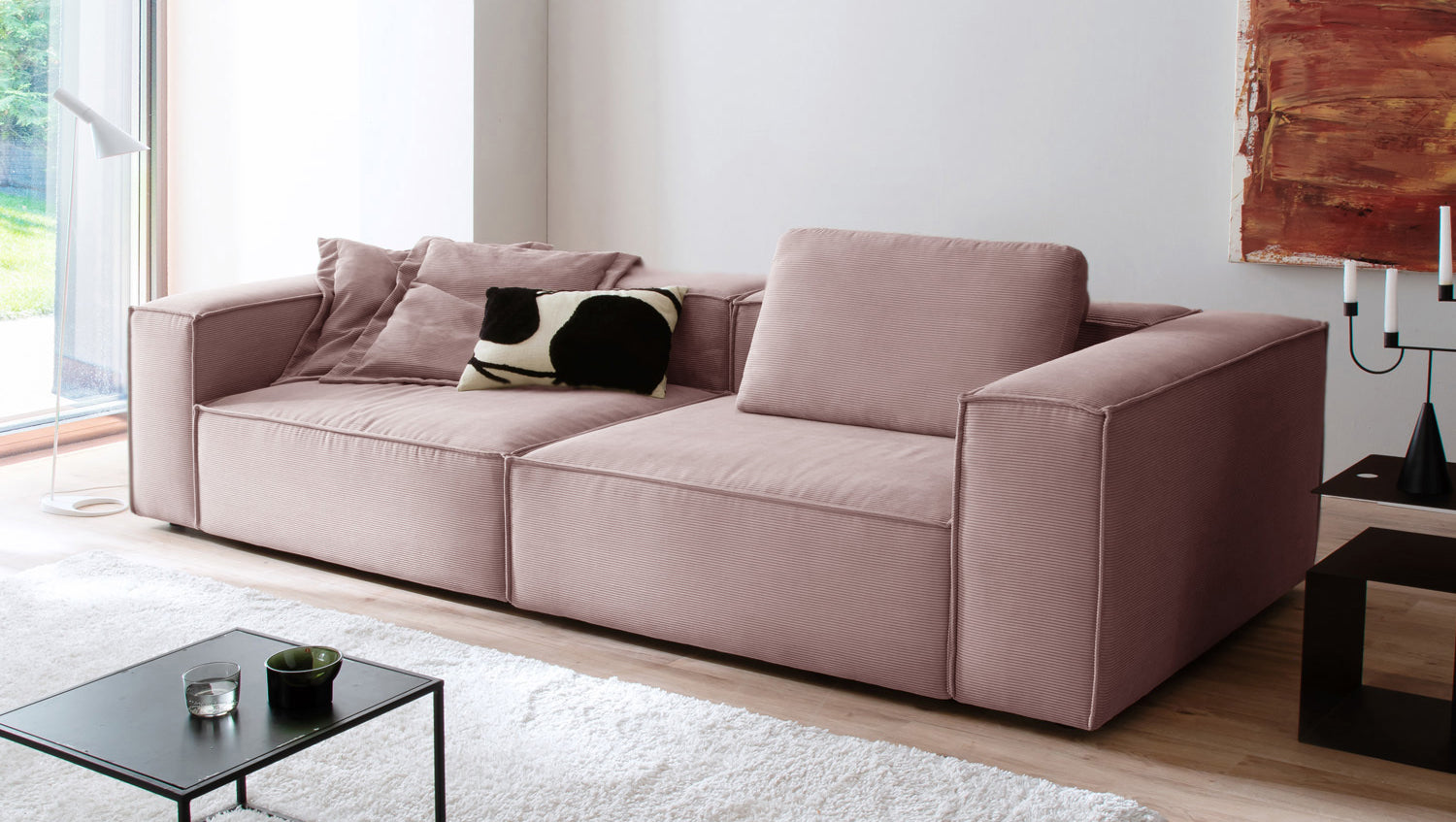 Der weiche Sitzkomfort lädt zum Entspannen ein – ob alleine oder mit Gästen. Mit einer Breite von 306 cm bietet CARMO großzügig Platz für gemütliche Stunden. Der Rundumbezug sorgt dafür, dass das Sofa frei im Raum stehen kann – ideal für moderne Wohnkonzepte.