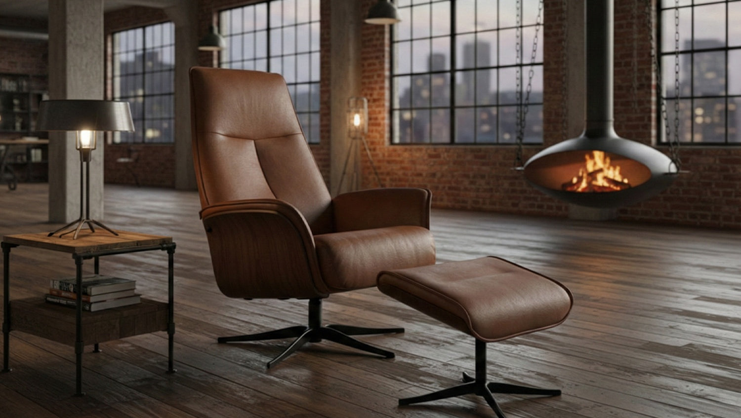 KAWOLA Relaxsessel FERREIRA Drehsessel Leder braun mit Hocker