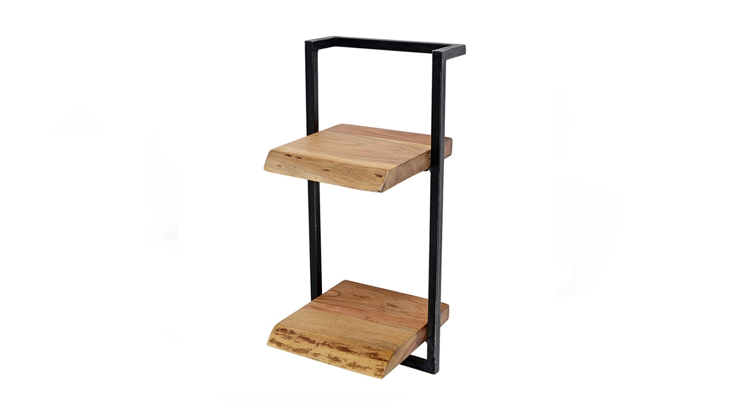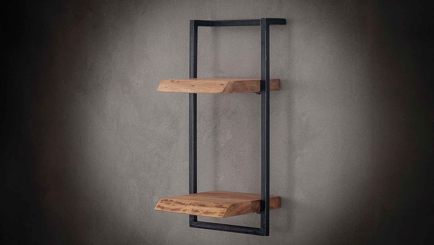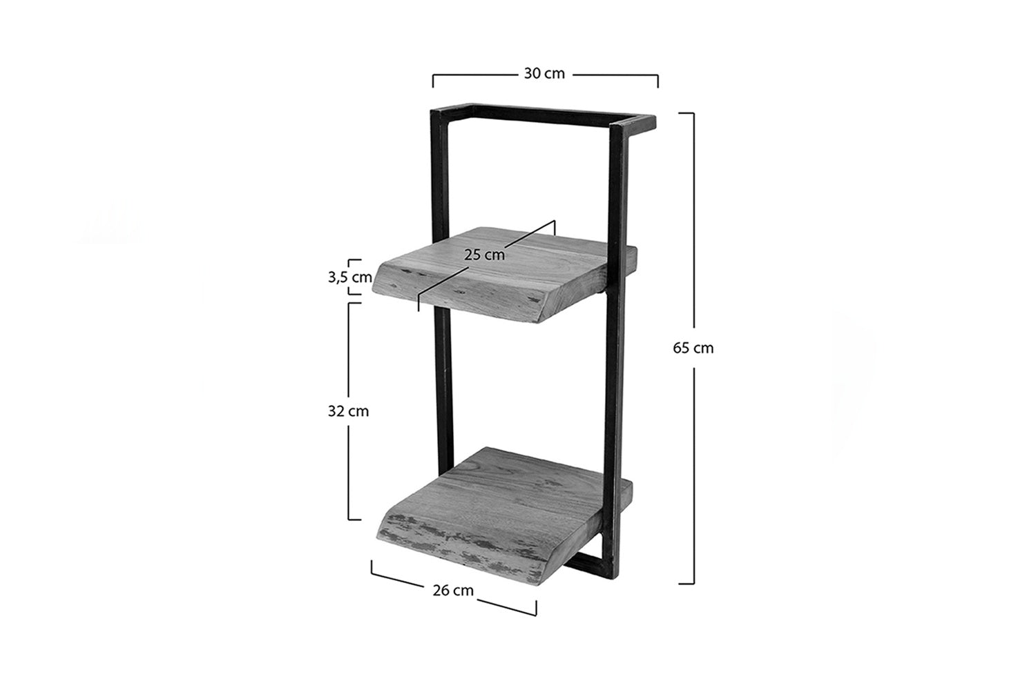 Das KAWOLA Wandregal ERGEA mit den Maßen 30 x 65 cm ist eine stilvolle Ergänzung für Ihr Zuhause, die natürliche Schönheit und industriellen Charme perfekt vereint. Es besteht aus zwei jeweils 26 cm breiten Regalen aus massivem Akazienholz, die an einem robusten Vintage-Stahlrahmen befestigt sind. Die Enden der Holzfächer weisen eine stabile, geschliffene Baumstammform auf, die dem Regal ein authentisches und robustes Aussehen verleiht. Dieses Wandregal ist Teil einer passenden Serie und lässt sich problemlos mit anderen Größen kombinieren, um eine individuelle und verspielte Regalwand zu gestalten. Die Montage ist dank zweier Befestigungsösen einfach und sicher an der Wand.
