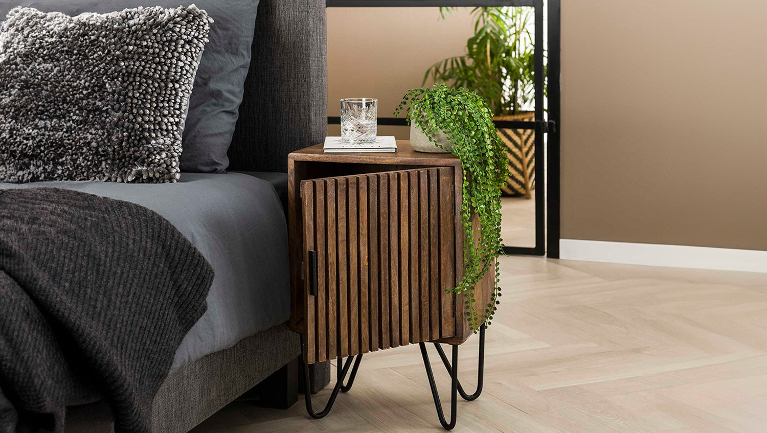Das KAWOLA Nachttisch-Set SWEAK, bestehend aus zwei Tischen, überzeugt mit natürlicher Ausstrahlung und funktionalem Design. Gefertigt aus hochwertigem Mangoholz mit sandfarbenem Finish, bringt es Wärme und Stil in jedes Schlafzimmer. Das Set besteht aus einer linken und einer rechten Variante – perfekt abgestimmt für beide Seiten des Betts. Jede Nachtkonsole bietet eine praktische Ablagefläche für Bücher, Deko oder persönliche Gegenstände. Mit kompakten Maßen von 40 x 30 x 60 cm ist das Set ideal für moderne Einrichtungen, in denen Funktionalität und Ästhetik gefragt sind. Ob als stilvolle Nachttische oder als Beistelltische im Wohnbereich – das SWEAK Set ist vielseitig einsetzbar und ein echter Blickfang.