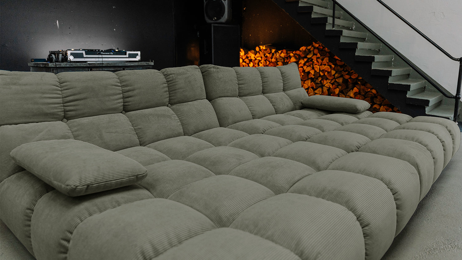 KAWOLA Big Sofa VIVIEN Feincord olivgrün