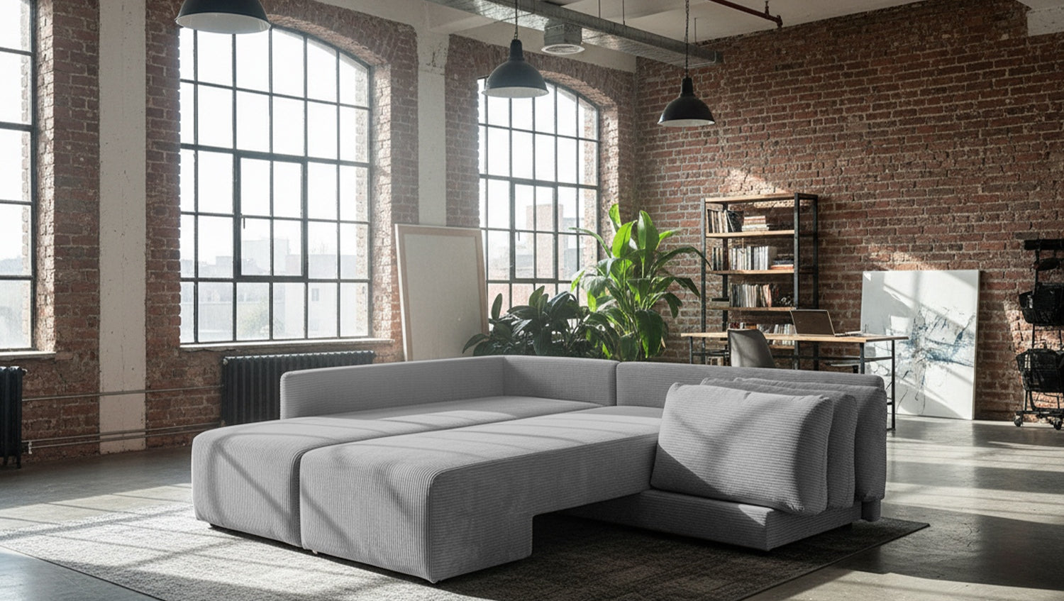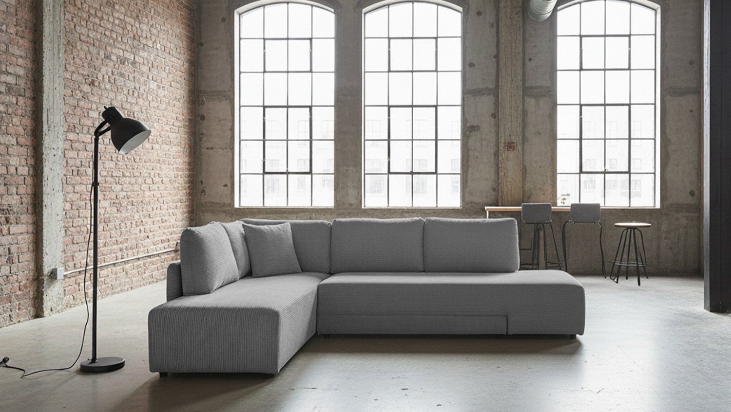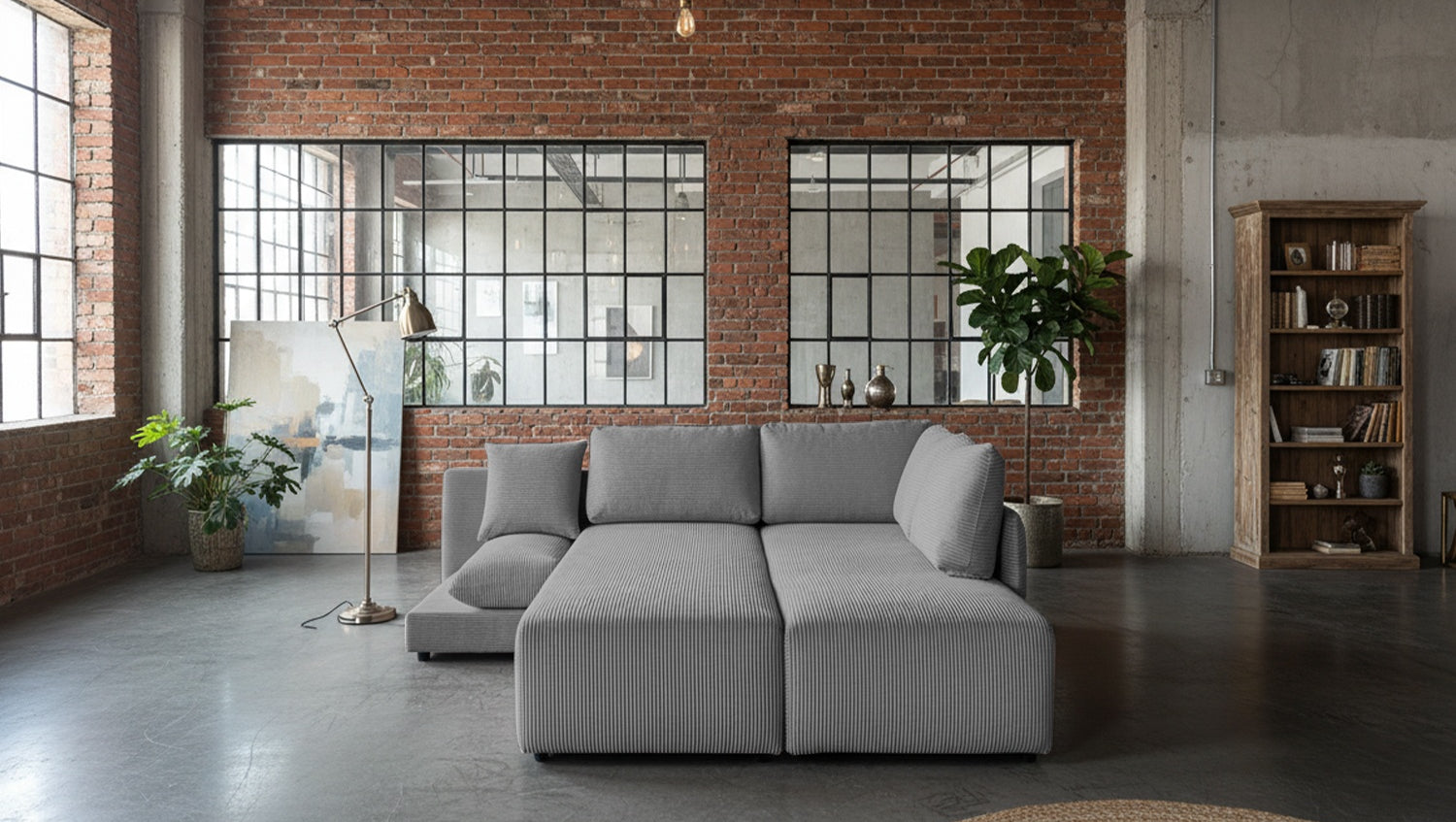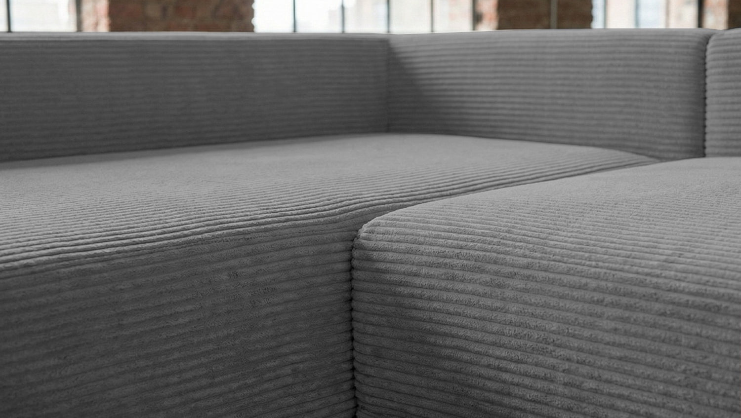 Die großzügige Ecklösung bietet viel Platz für entspannte Abende, geselliges Beisammensein oder ruhige Momente. Mit wenigen Handgriffen lässt sich das Sofa in eine komfortable Liegefläche verwandeln. Die durchgehende Polsterung sorgt dabei für ein gleichmäßiges Liegegefühl und macht SADIRA zu einer idealen Lösung für Gäste oder den regelmäßigen Gebrauch als Schlafsofa. Der Cord-Bezug unterstreicht den wohnlichen Charakter zusätzlich und vermittelt Wärme und Behaglichkeit.