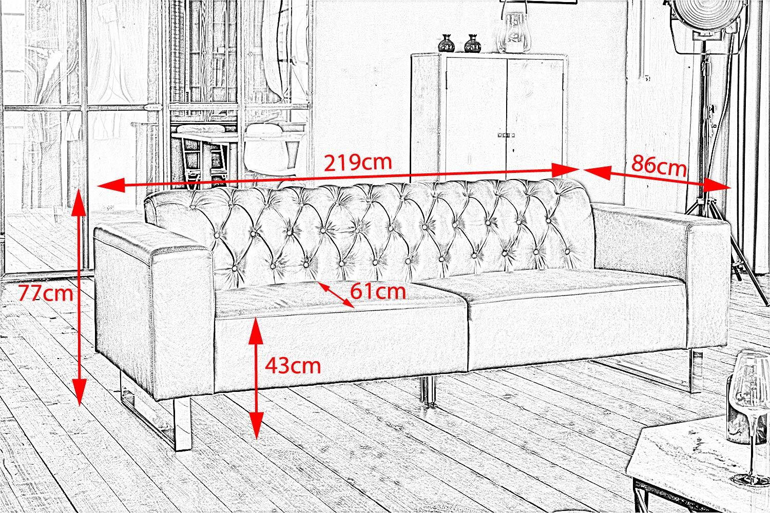 • Maße (B/T/H): 219/86/77 cm