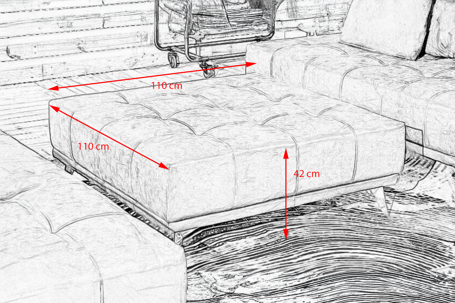 Der Hocker ist außerdem die perfekte Ergänzung zu den Sofas aus der Serie WIOLO und ist auch im Set zusammen mit dem Ecksofa erhältlich.