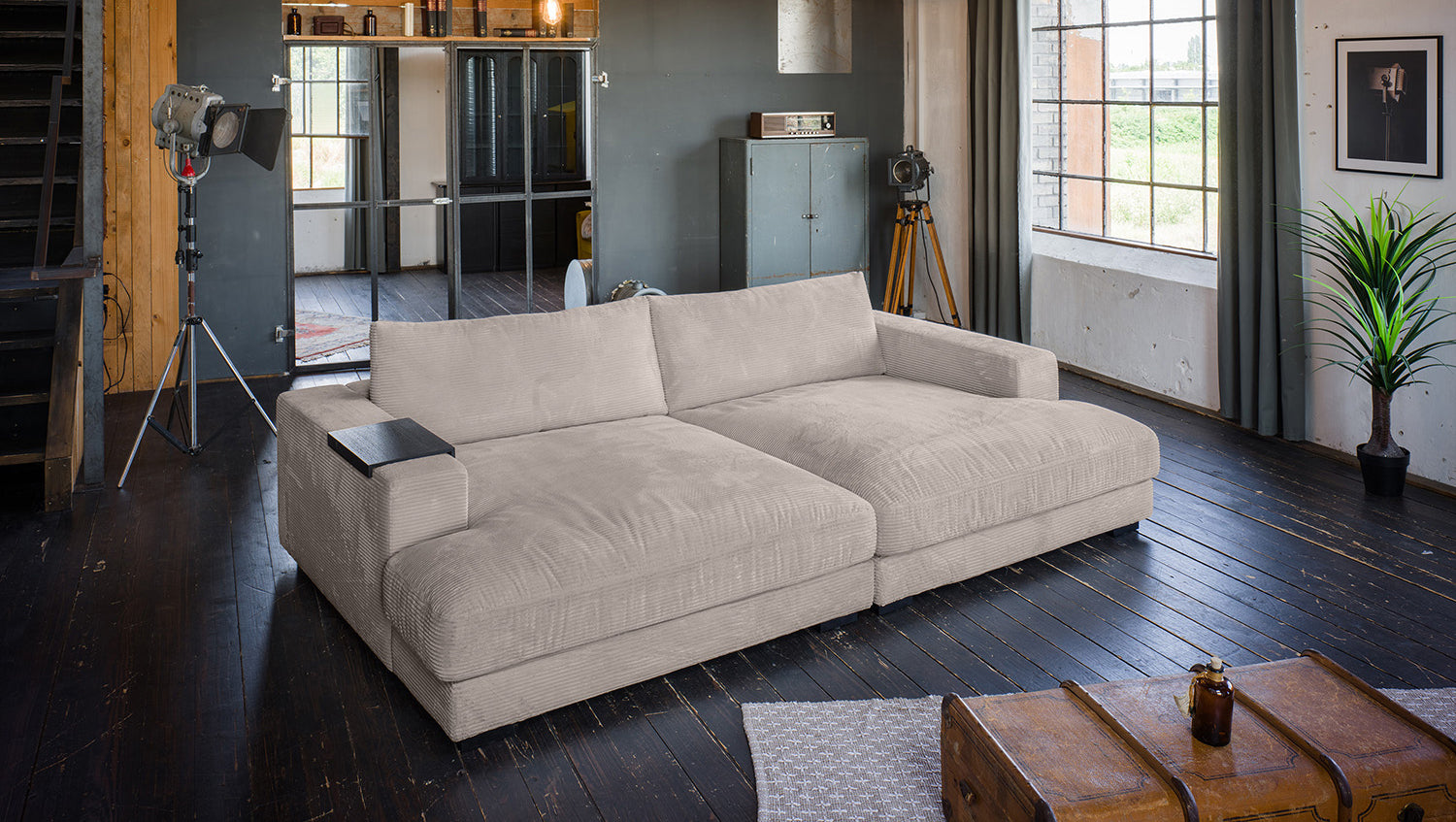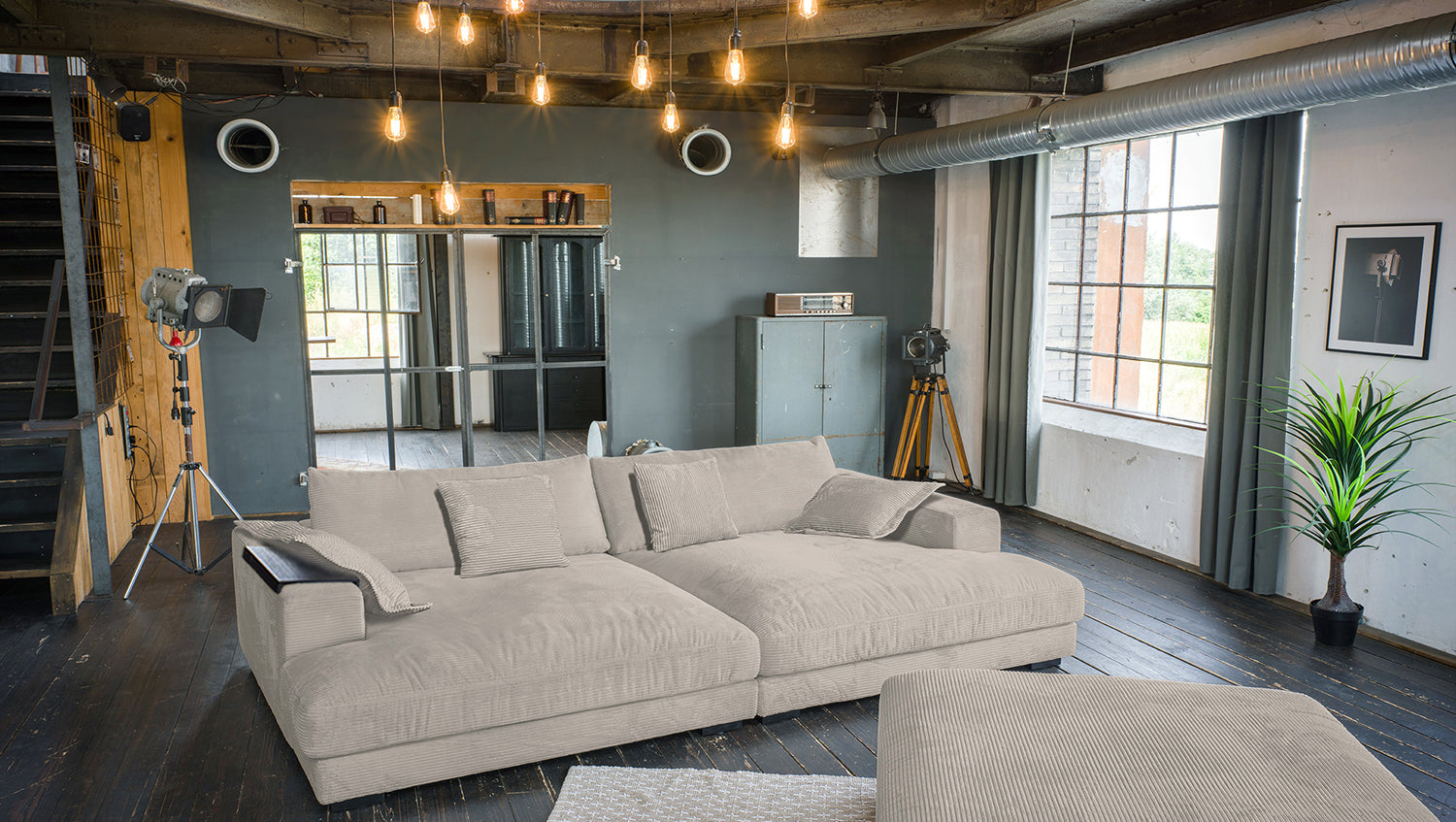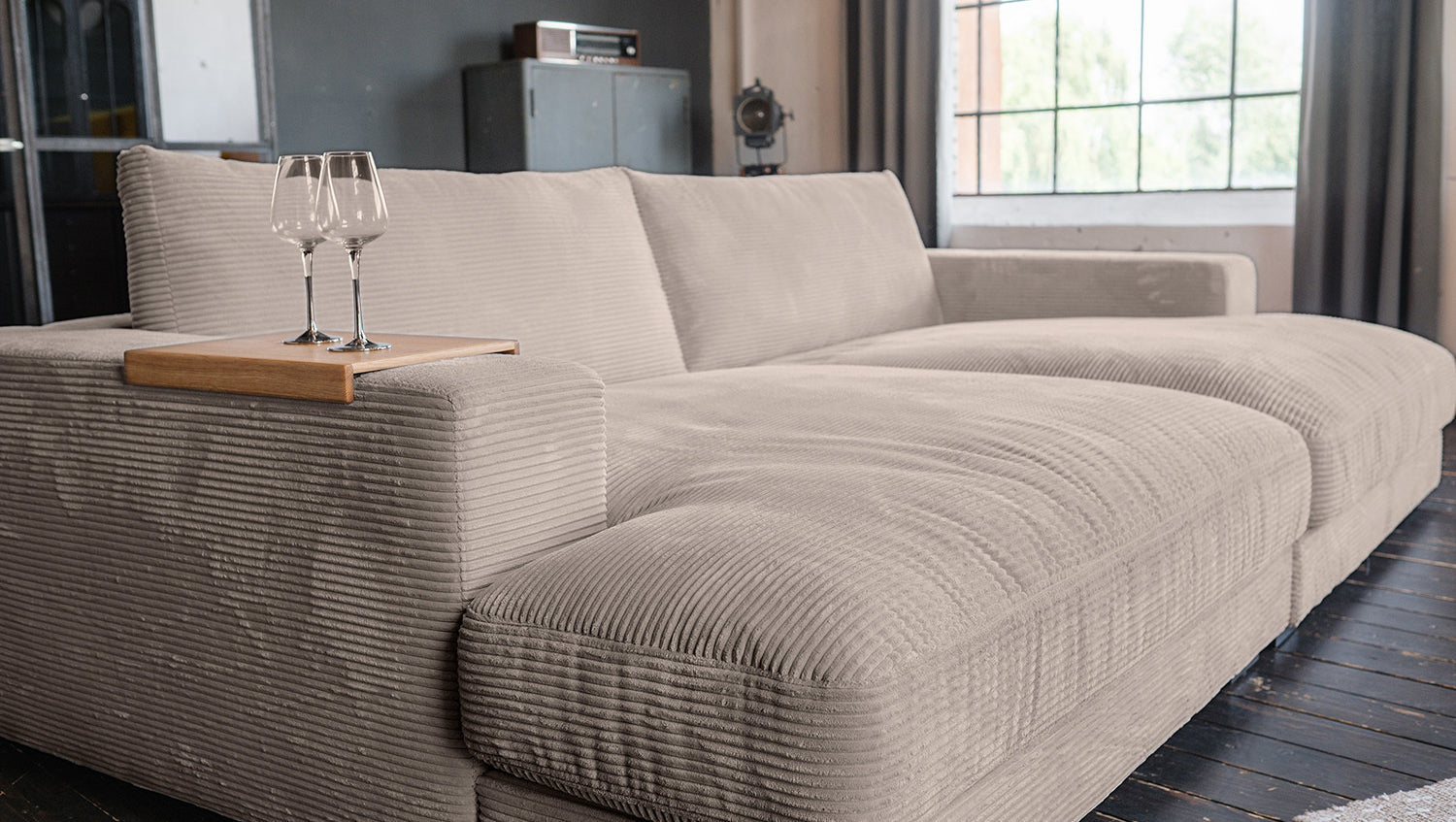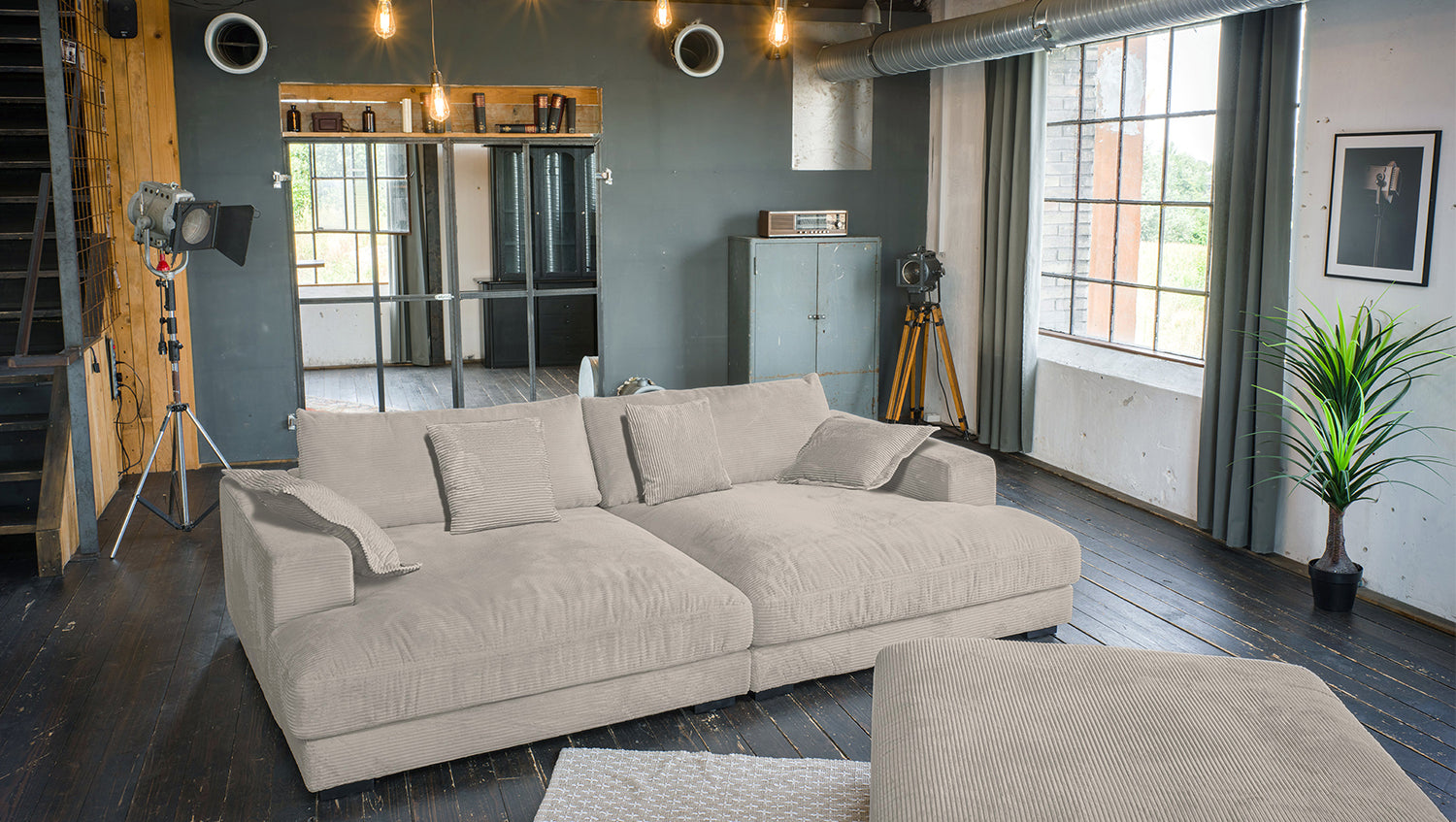 • INKLUSIVE HOCKER - Der Hocker erweitert die Sitzfläche & macht das Sofa zur Wohnlandschaft
