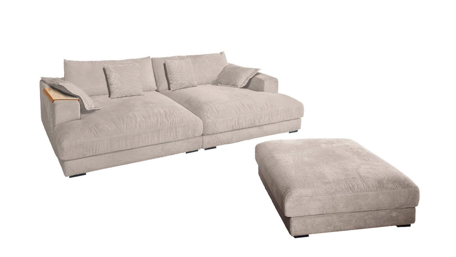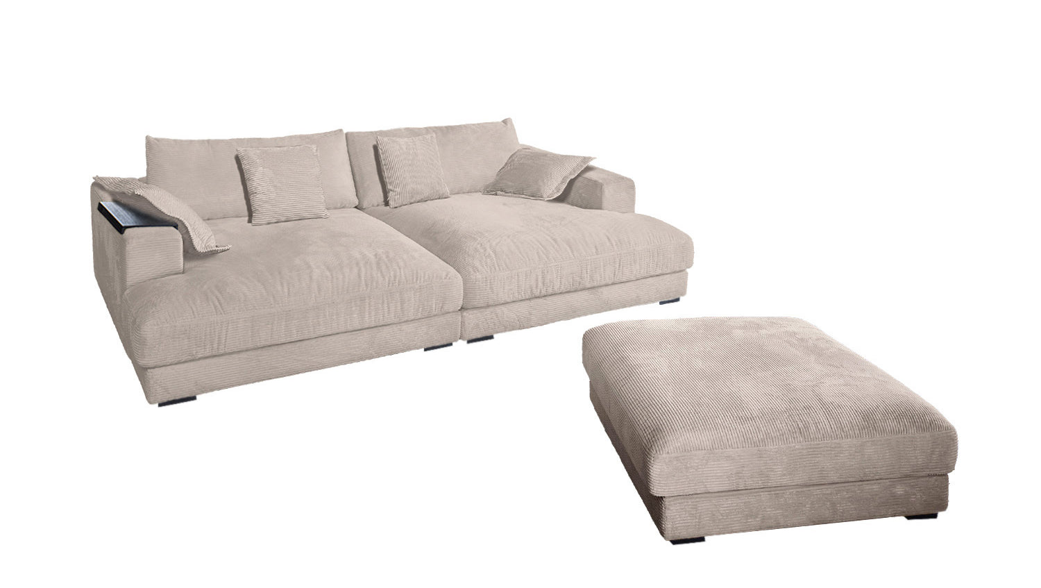 KAWOLA Big Sofa MADELINE Cord taupe mit Hocker und 4 Zierkissen